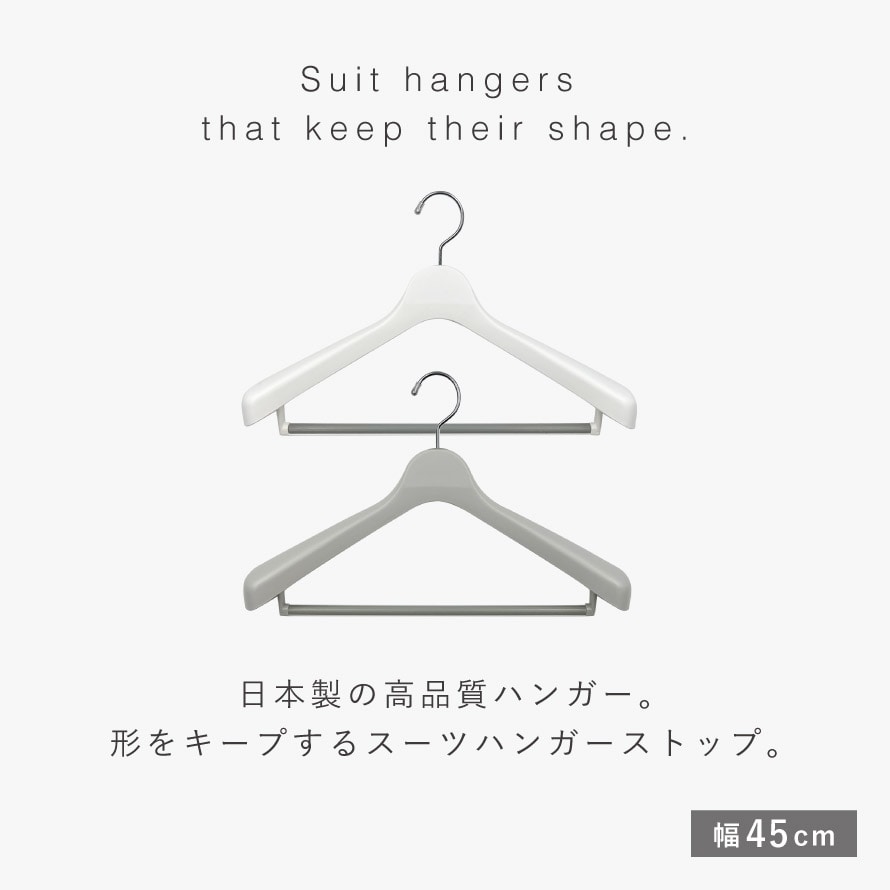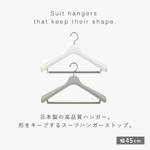 ハンガー ジャケット シンコハンガー 45cm かたくずれ防止 レディース メンズ スーツ アーチ型 型崩れしない 回転フック モノクローゼット スーツハンガーストップ45