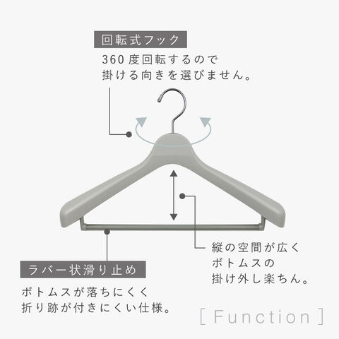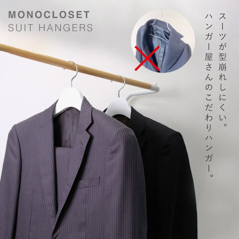 こちらのmonocloset(モノクローゼット)のシリーズのスーツハンガーは、シンプルかつ厚みのある人体設計。