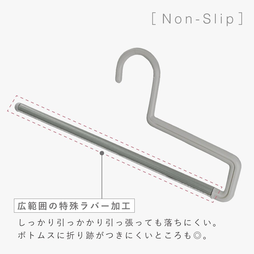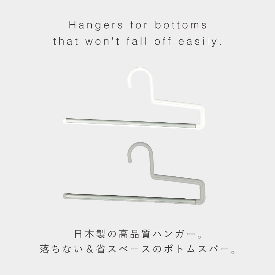 掛けにくく、すぐに落ちてしまうボトムスを、工夫され掛けやすい設計にした「ボトムスバー」。