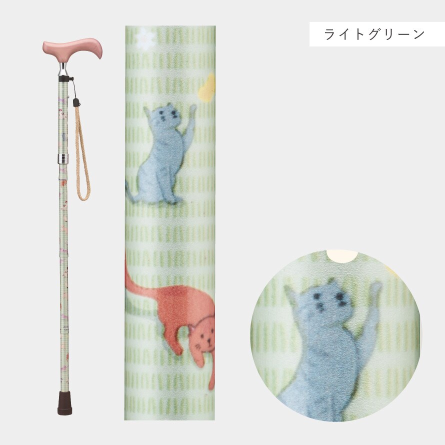 猫のイラストに癒される、折畳ステッキ。