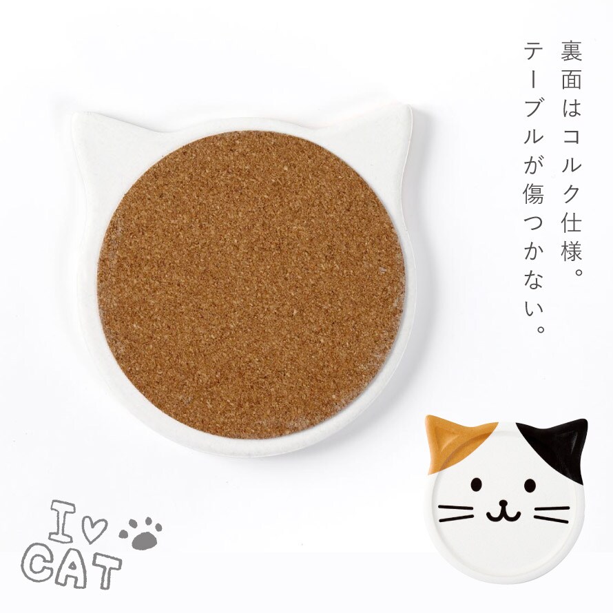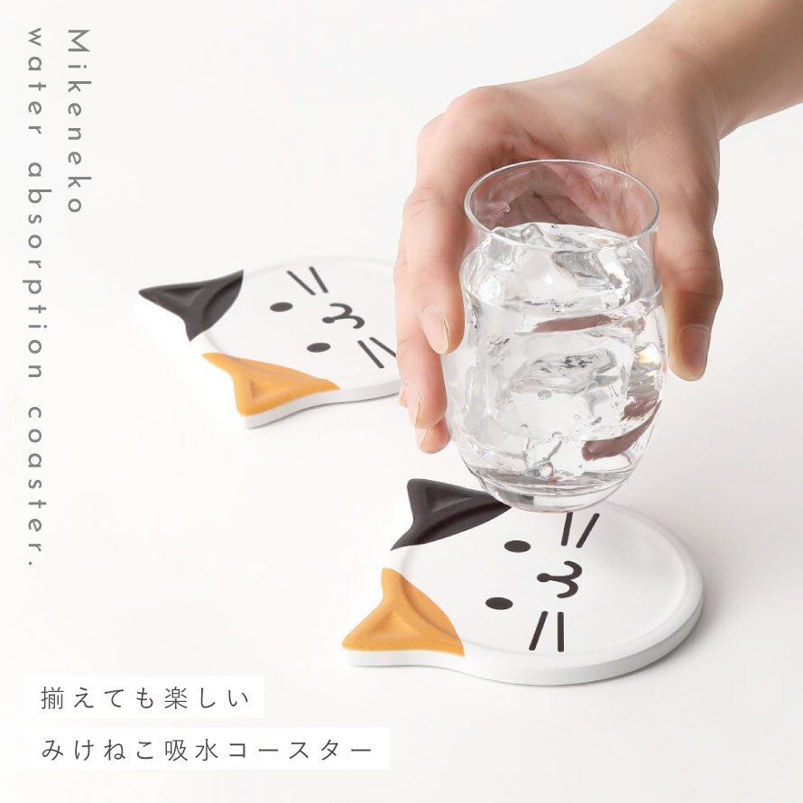 コースター 猫 雑貨 グッズ 可愛い 動物 吸水 みけねこ 吸水コースター