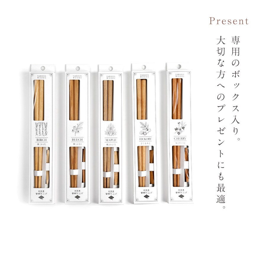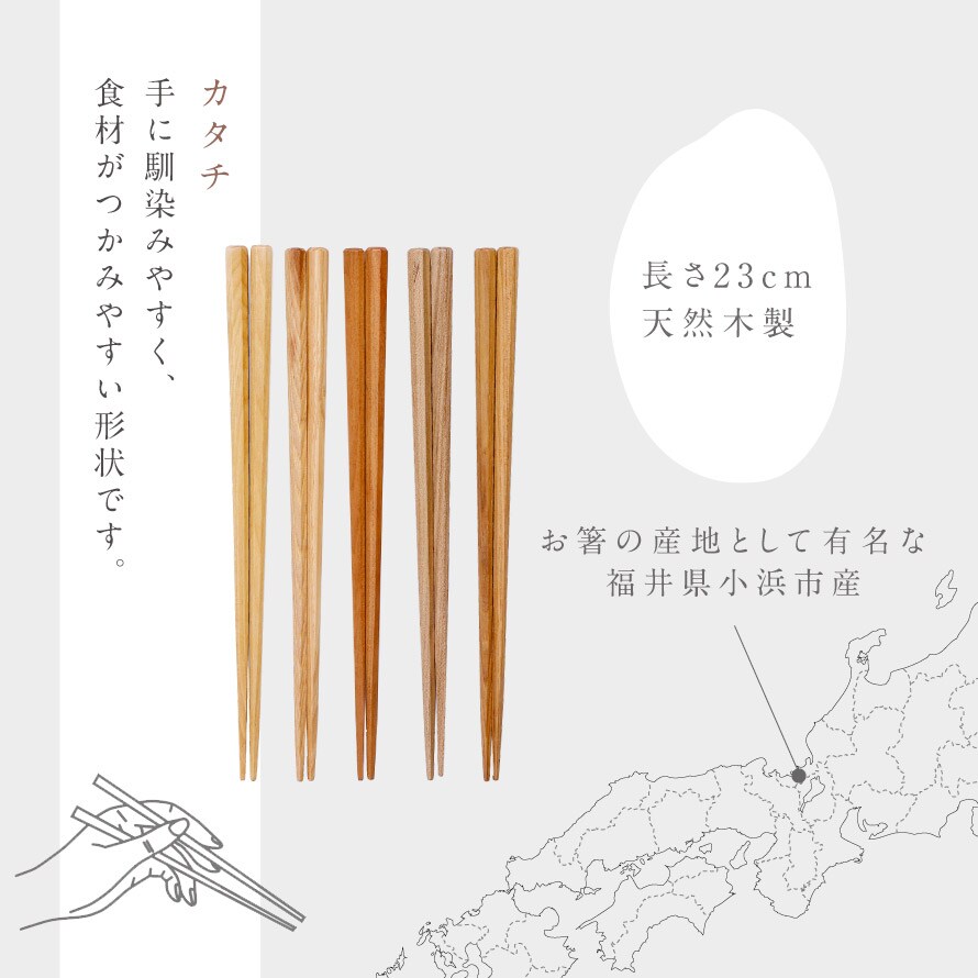 お箸の産地として有名な福井県小浜市で作られ、職人が一膳一膳丁寧に仕上げました。