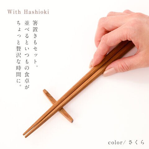 箸セット 箸置き付き 木製 おしゃれ 箸 23cm インスタ映え ナチュラル 北欧風 天然木 日本製 木の箸 男性 女性 カフェ風 シンプル 樺 かば かえで 楓 くるみ さくら 桜 ブナ バリアス 新生活 和モダン