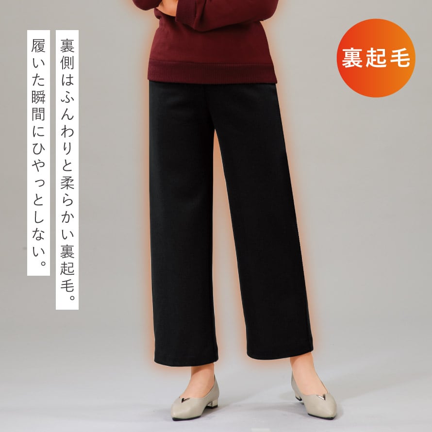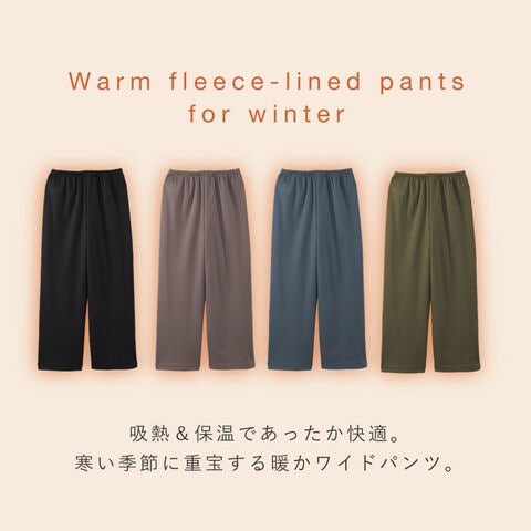 寒い季節のお出かけやお家時間に重宝する、裏起毛のあたたかワイドパンツです。生地には吸熱保温素材「ホットヴェール」を採用し、太陽光や体温から生まれる赤外線を熱へ変えることで、腰まわり・太もも・お腹をじんわり温めてくれます。冬の冷え対策が気になる方に冬用の裏起毛レディースパンツです。