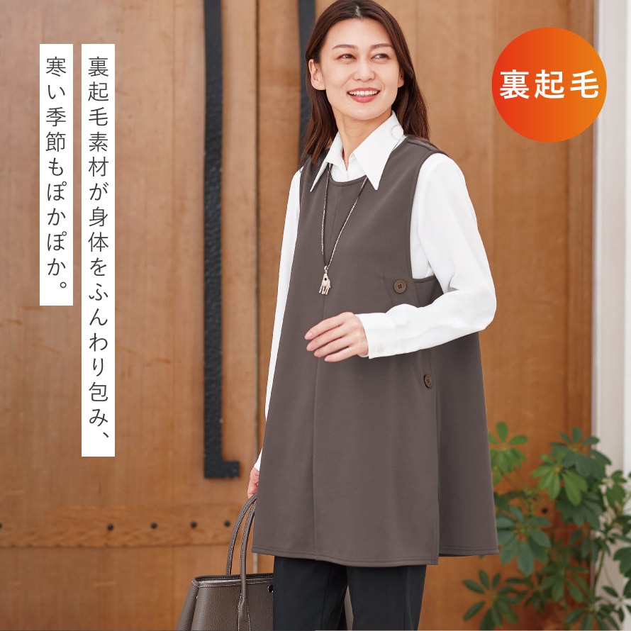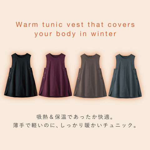 薄手で軽いのに、しっかり暖かい裏起毛チュニックベスト。