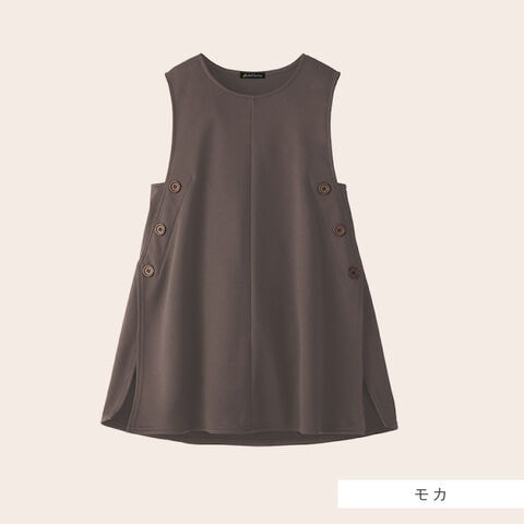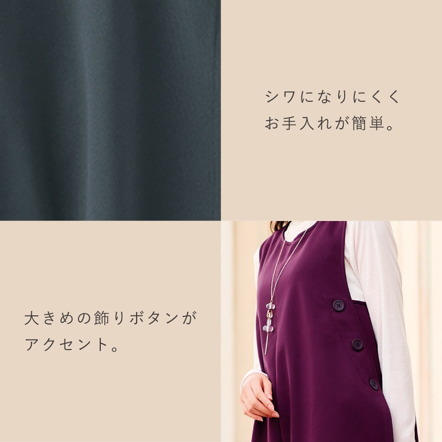 着ぶくれしにくいスッキリシルエットで、気になるお腹・腰まわりを自然にカバーし、シニア世代にも着やすいデザインです。
