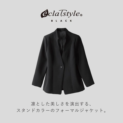 凛とした美しさを演出する、スタンドカラーのフォーマルジャケット。落ち着いた佇まいで、装いを上品に引き締めます。