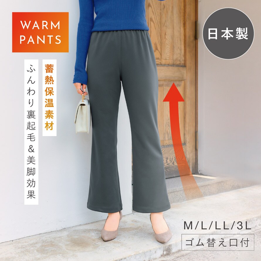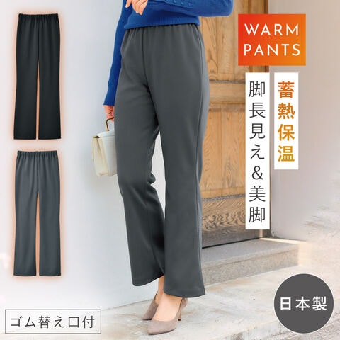 裏起毛 あったか レディースパンツ 吸熱保温素材 美脚パンツ 足長 総ゴム ゴム替え口付 日本製 M L LL 3L ゆったり 大きいサイズ シニア 冬用 防寒 ゴム替え出来る裏起毛パンツ ブラック グレー 60代 70代 80代 ミセスファッション
