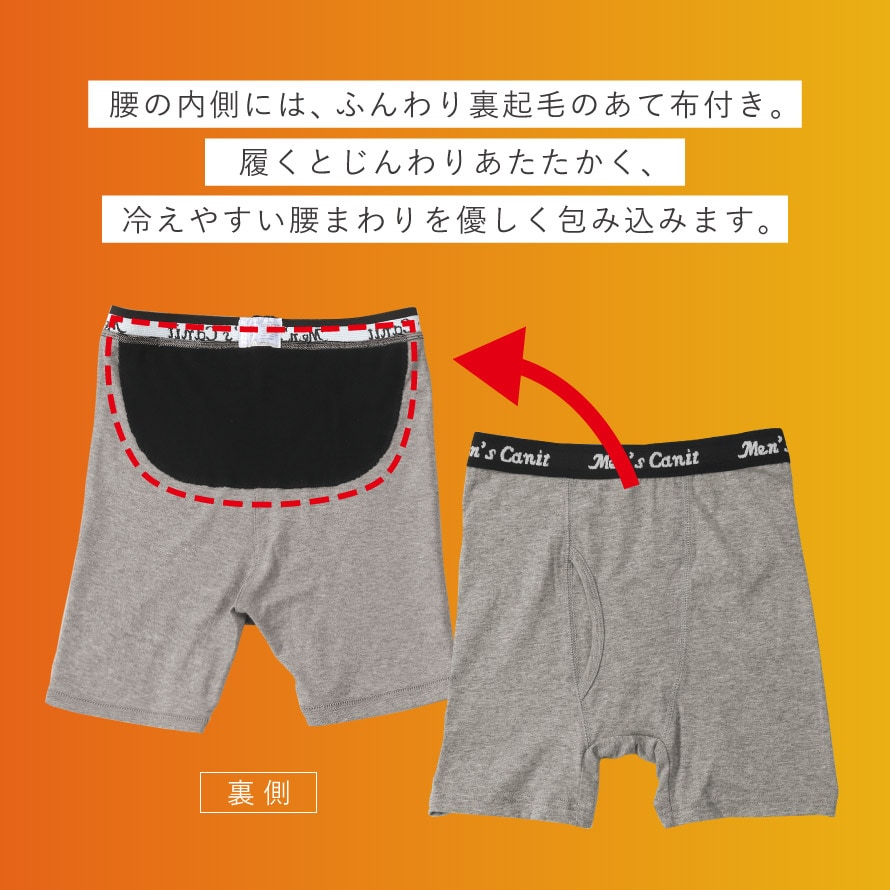 寒い季節の「腰冷え」が気になる方におすすめの、腰部分あったか設計のメンズトランクスです。腰の内側には、ふんわり裏起毛のあて布付き。履くとじんわりあたたかく、冷えやすい腰まわりをやさしく包み込みます。冬の冷え対策として、60代・70代・80代の男性に人気のあったか紳士用下着(トランクス)です。