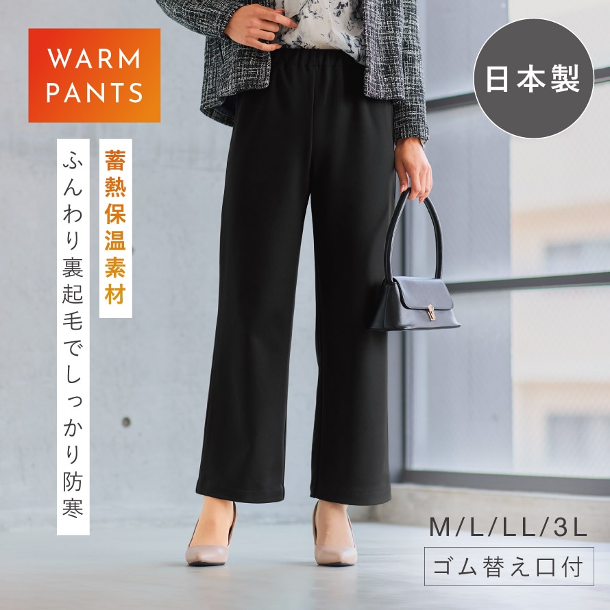 裏起毛 あったかパンツ 日本製 レディース 冬用 シニア 吸熱保温 ホットヴェール ウエスト 総ゴム ゴム替え対応 防寒 60代 70代 80代 M L LL 3L ゆったり 大きいサイズ ブラック グレー ゴム替えできる裏起毛あったかミラクルパンツ ミセスファッション