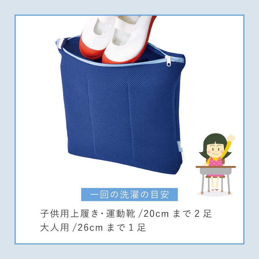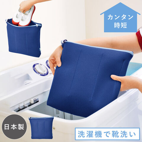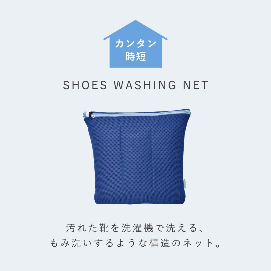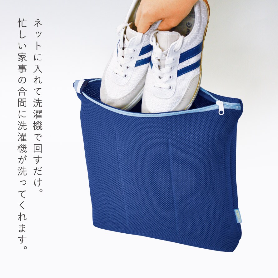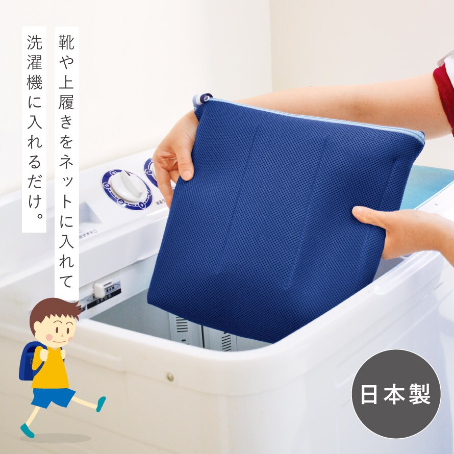 汚れた靴や上履きをネットに入れて洗濯機にポンと入れるだけ。