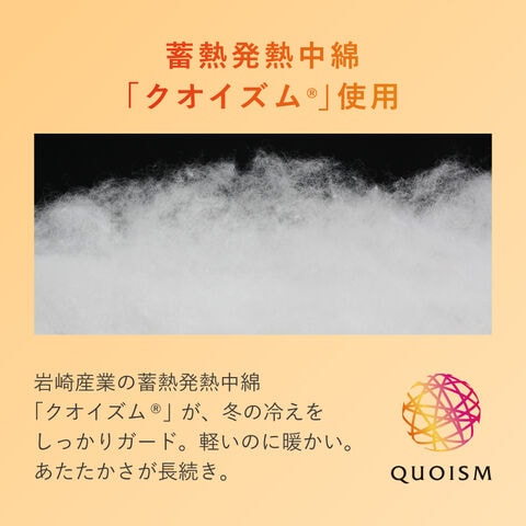 素材表側/綿100%、中綿/ポリエステル70%、レーヨン30%、裏側/ポリエステル100%