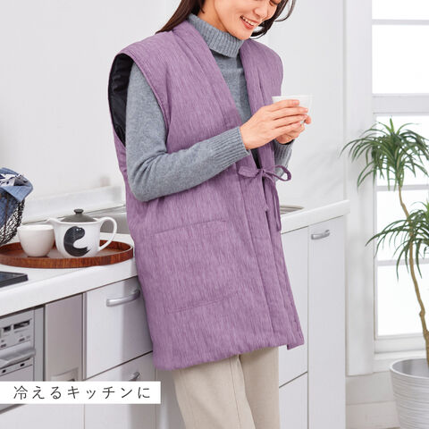 袖がないベストタイプだから、洗いもの・料理・掃除などの家事がしやすく、動きやすいのが魅力。