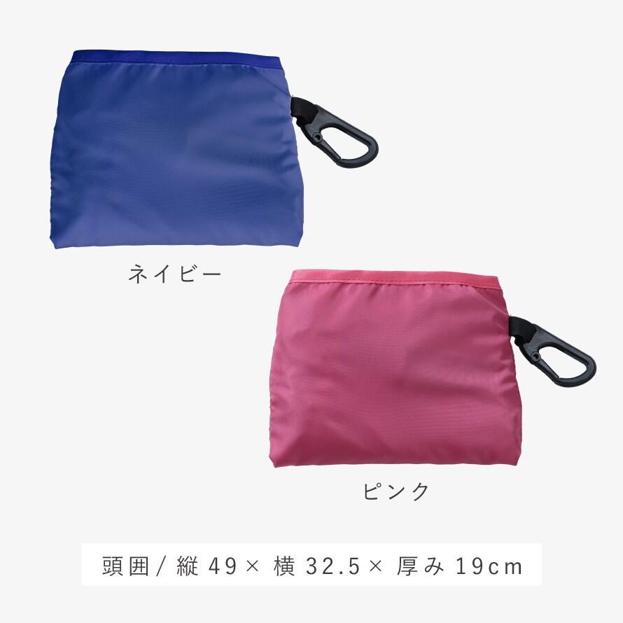 持ち歩きに便利なポケッタブル仕様。リュックやカゴに固定できる付属のカラビナ付きなのでなくしにくく◎。