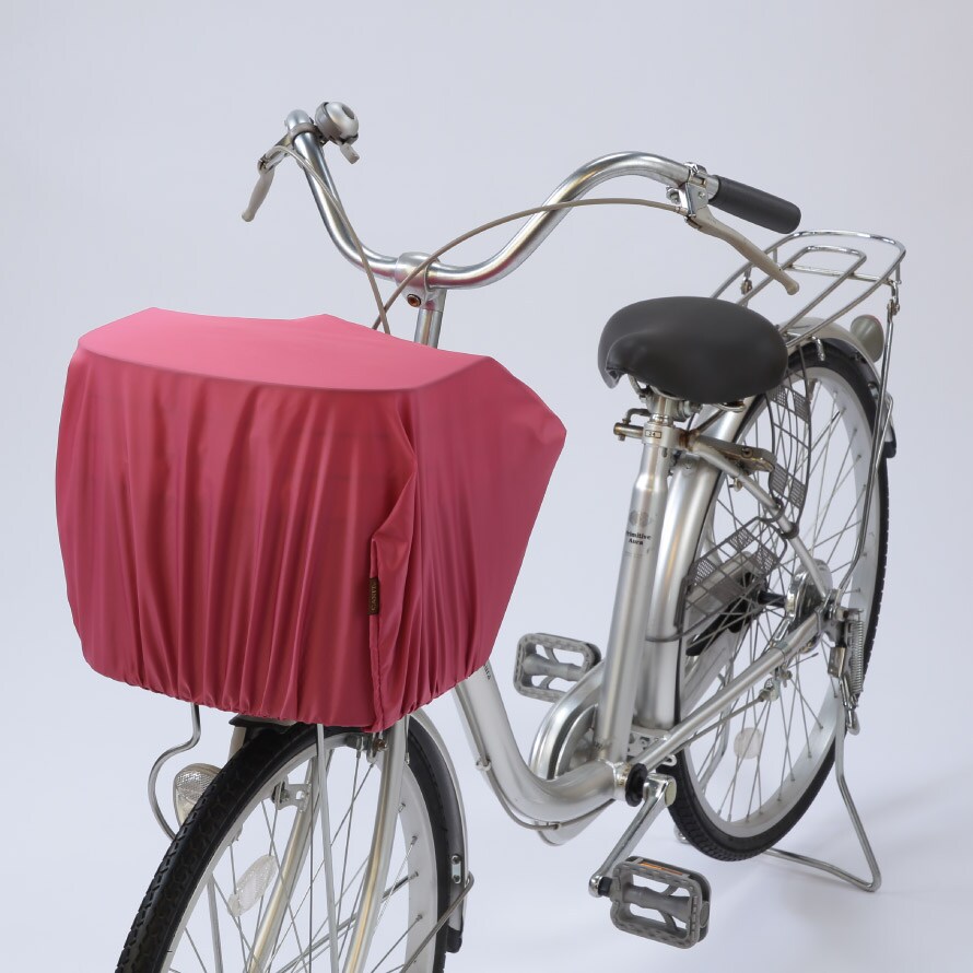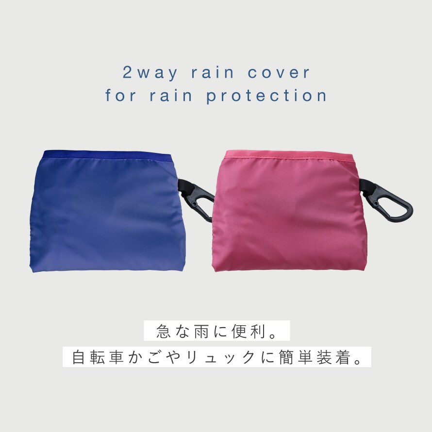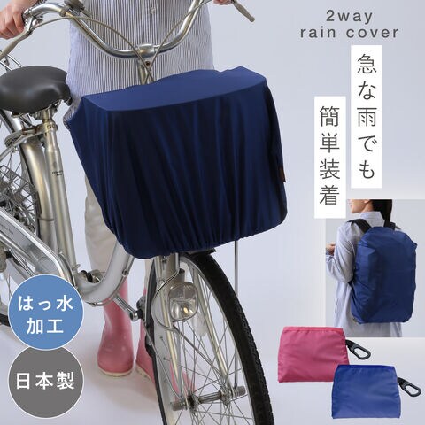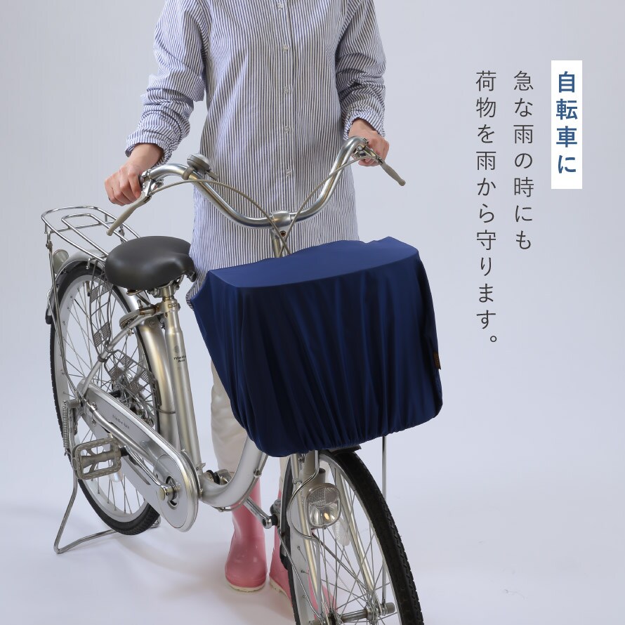 自転車で、急な雨でも、自転車かごやリュックにサッと取り付けられる簡単装着のカバーです。