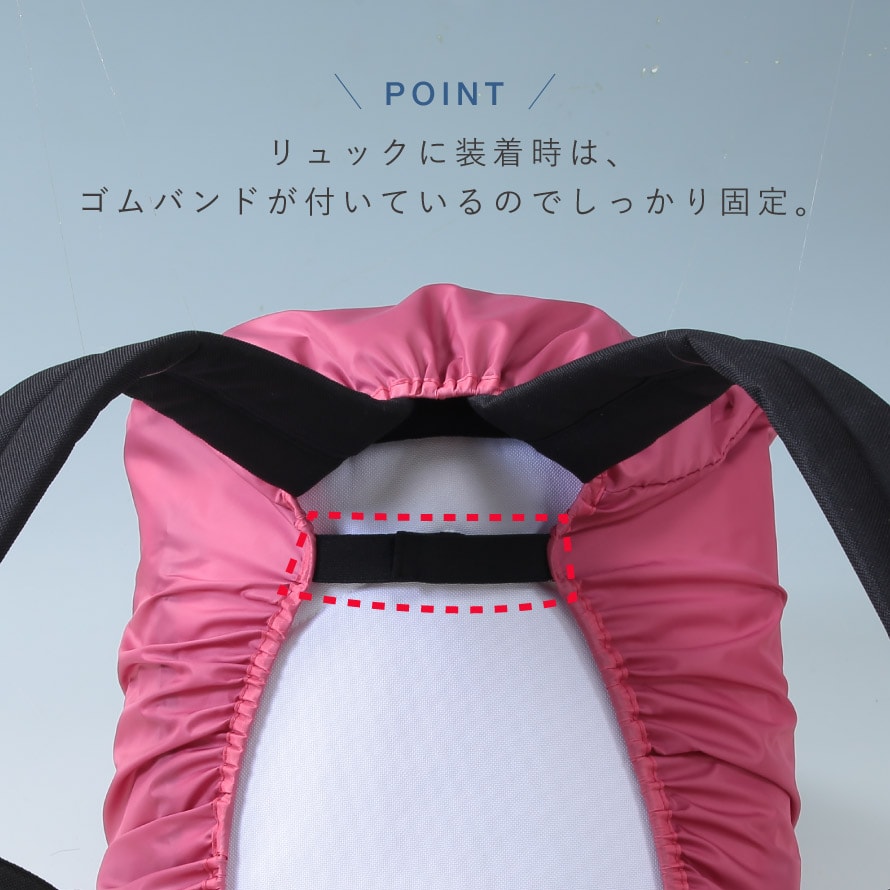 リュックに装着時は、ゴムバンドが付いているのでしっかり固定できます。