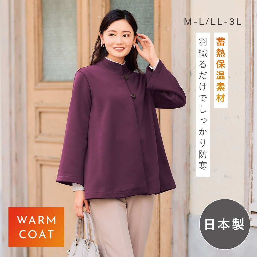 日本製 ポンチョ風あったかコート 裏起毛 レディース ホットヴェール蓄熱保温 アウター 軽量 羽織り 女性用 M L LL 3L 大きいサイズ ゆったり 防寒 ポンチョジャケット シニア ファッション 冬 冷え対策 50代 60代 70代 80代 あったか蓄熱保温ポンチョ風ジャケット