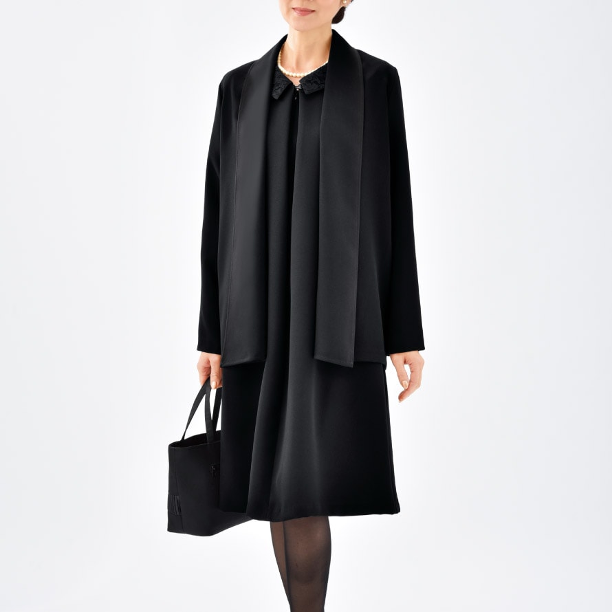肌寒い季節に重宝する、フォーマルカーディガン。法事などの場で、ブラウスやカットソーの上からさっと羽織れる一着です。