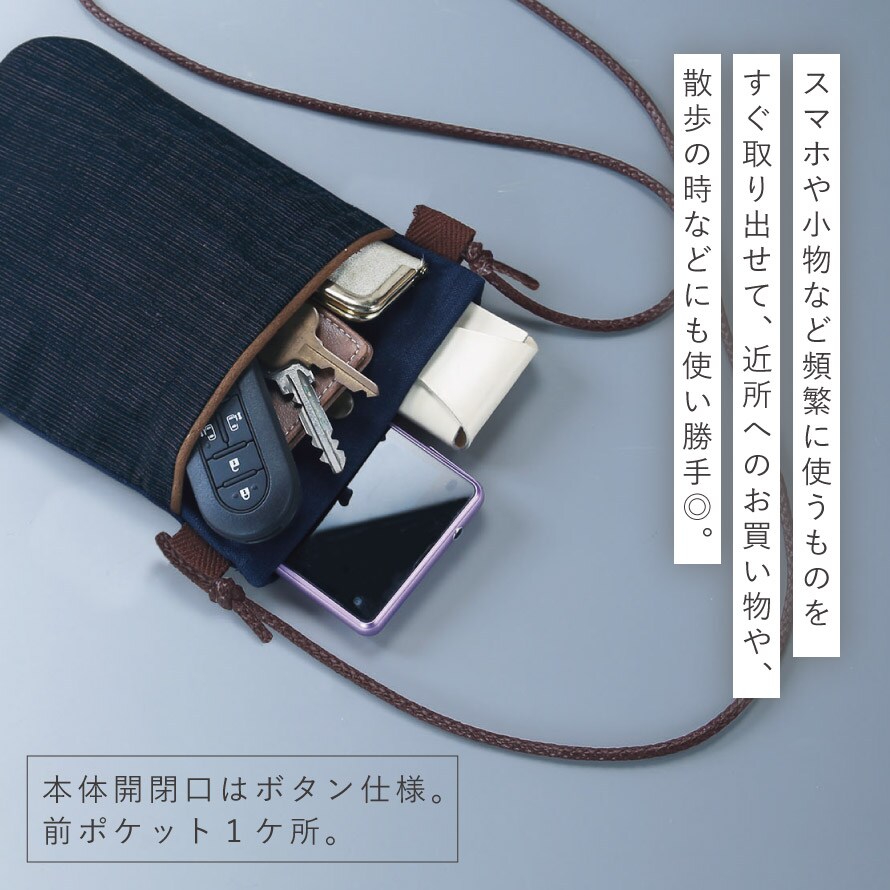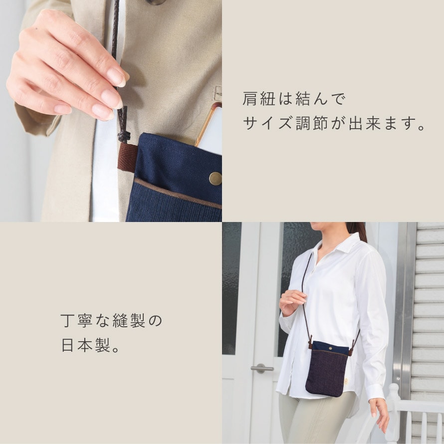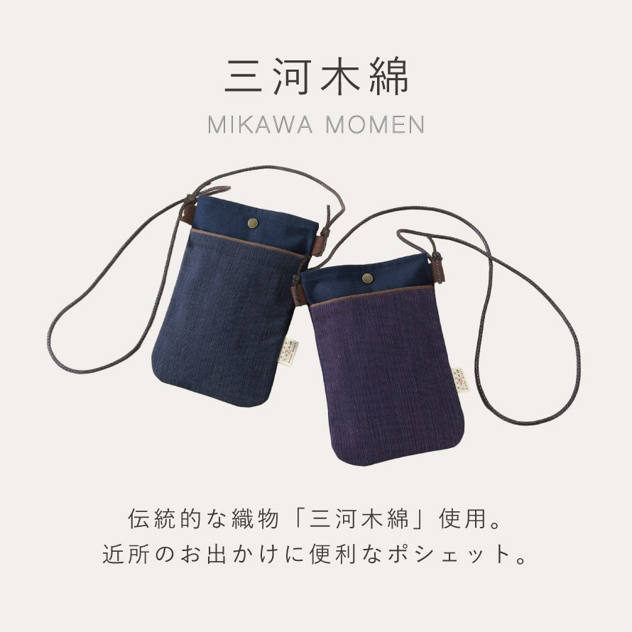 伝統的な織物「三河木綿」使用。近所のお出かけに便利なポシェット。