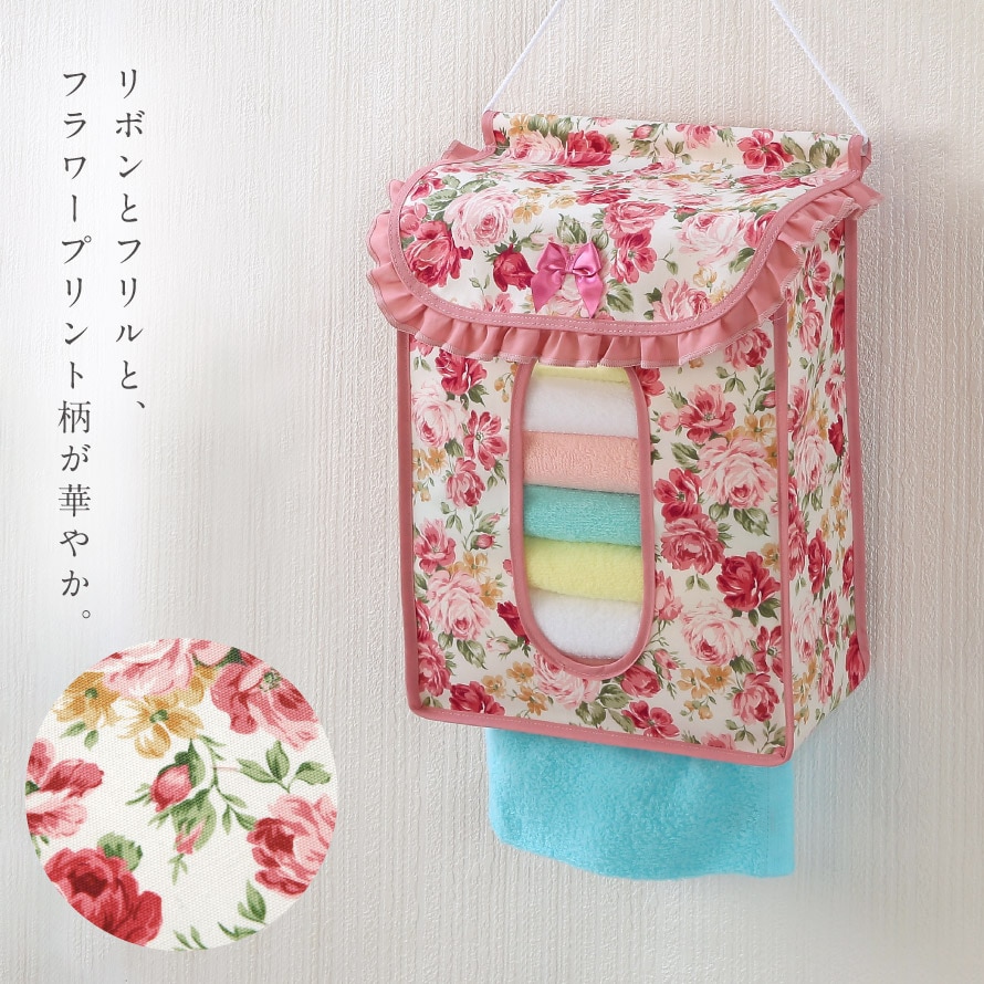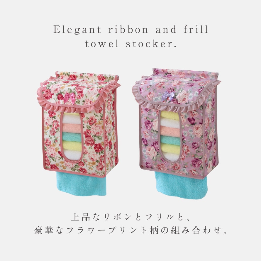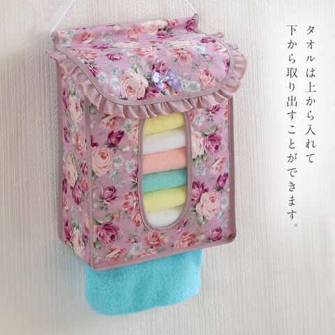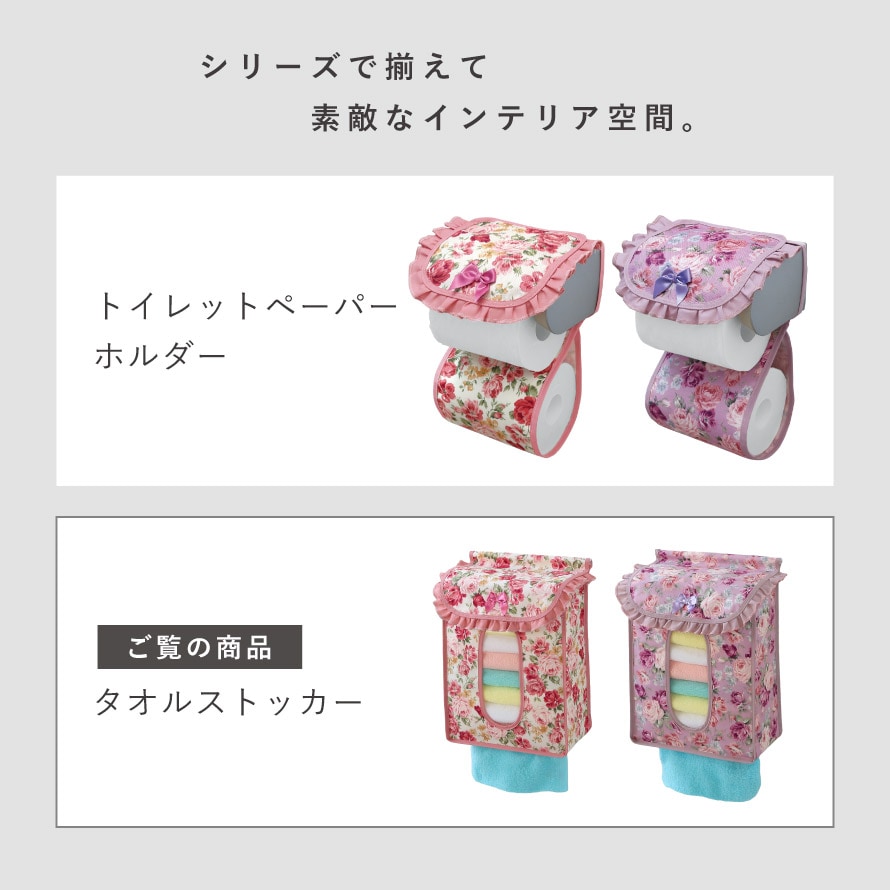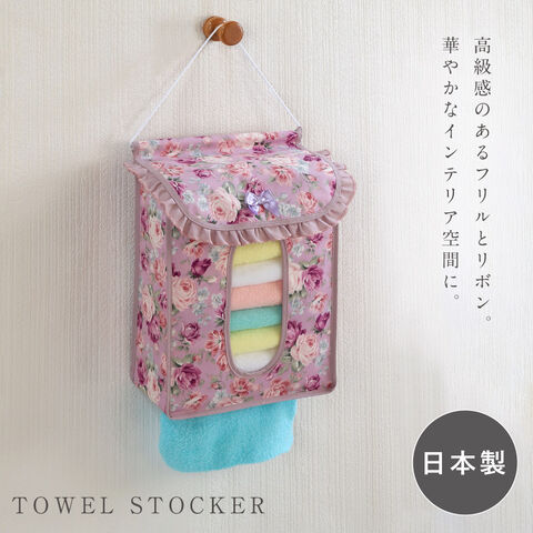 タオルストッカー 下から取り出す タオル ストッカー 壁掛け 吊り下げ ストック 収納 洗面所 日本製 高級感 エレガント 上品 おしゃれ ローズガーデン タオルストッカー