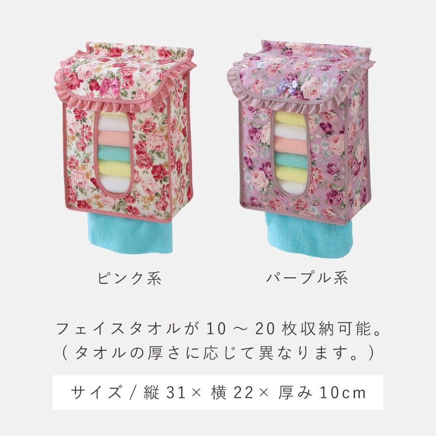 タオルは上から入れて下から取り出すことができます。フェイスタオルが10~20枚収納可能。(タオルの厚さに応じて異なります。)