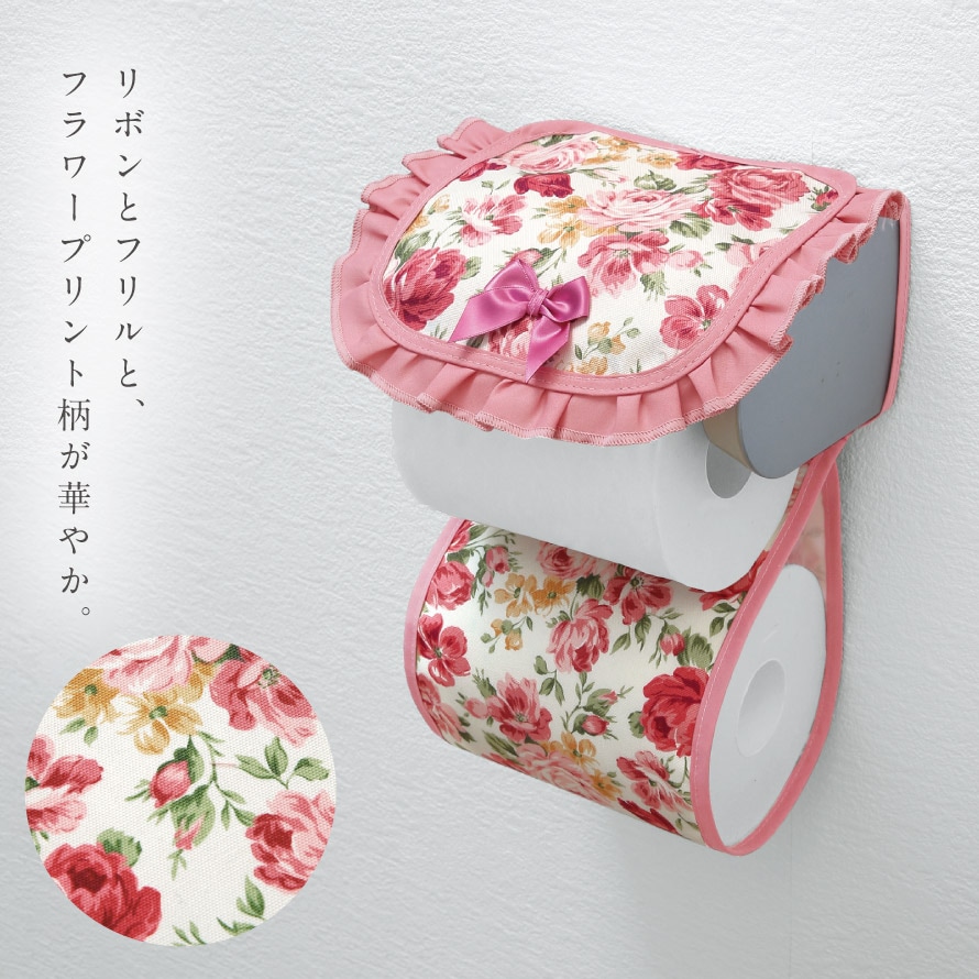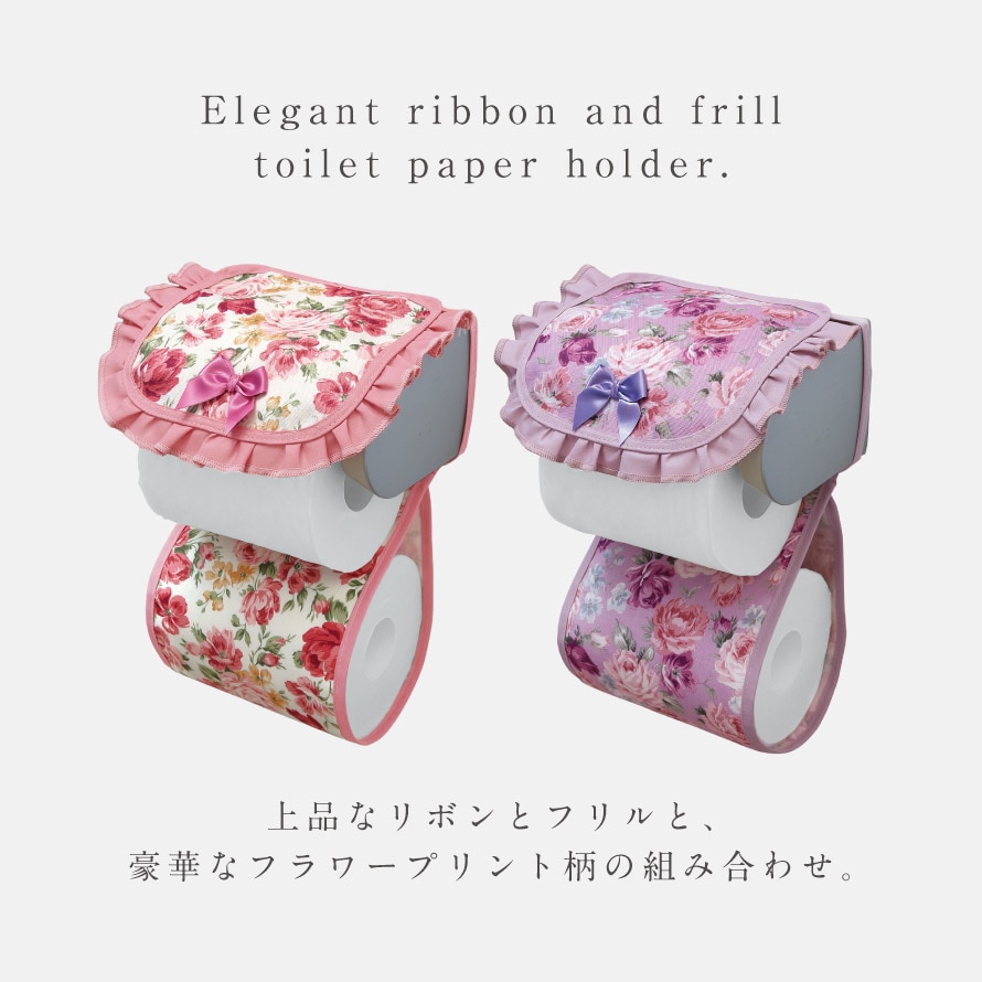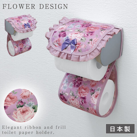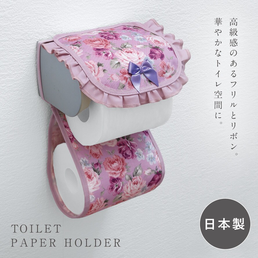 トイレットペーパーホルダー カバー 花柄 フリル おしゃれ トイレ ペーパーホルダー インテリア 日本製 高級感 エレガント 上品 ローズガーデン トイレットペーパーホルダー