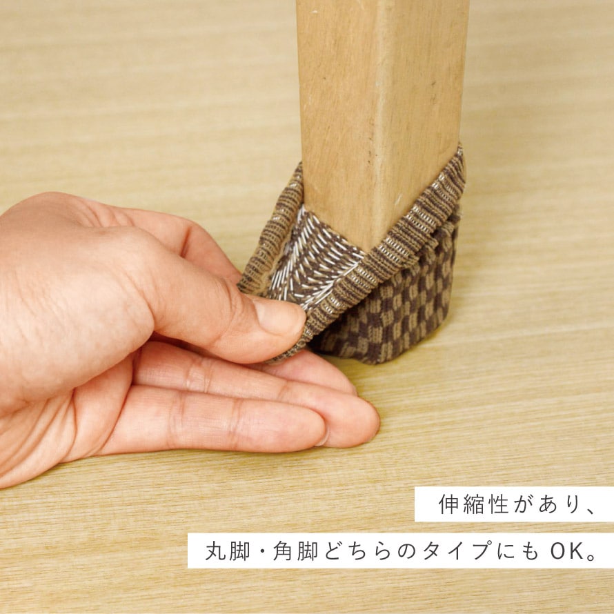 伸縮性があり、丸脚・角脚どちらのタイプにも使用可能。2脚分8枚セットです。