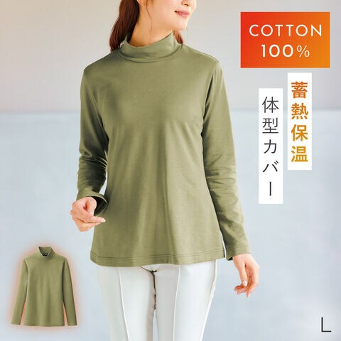日本製 綿100% 裏起毛 あったか ハイネック プルオーバー レディース 冬 体型カバー 蓄熱保温 ホットムーブ 敏感肌 冷え対策 M L LL 3L ゆったり 大きいサイズ あったか起毛着やせプルオーバー 50代 60代 70代 80代 シニア
