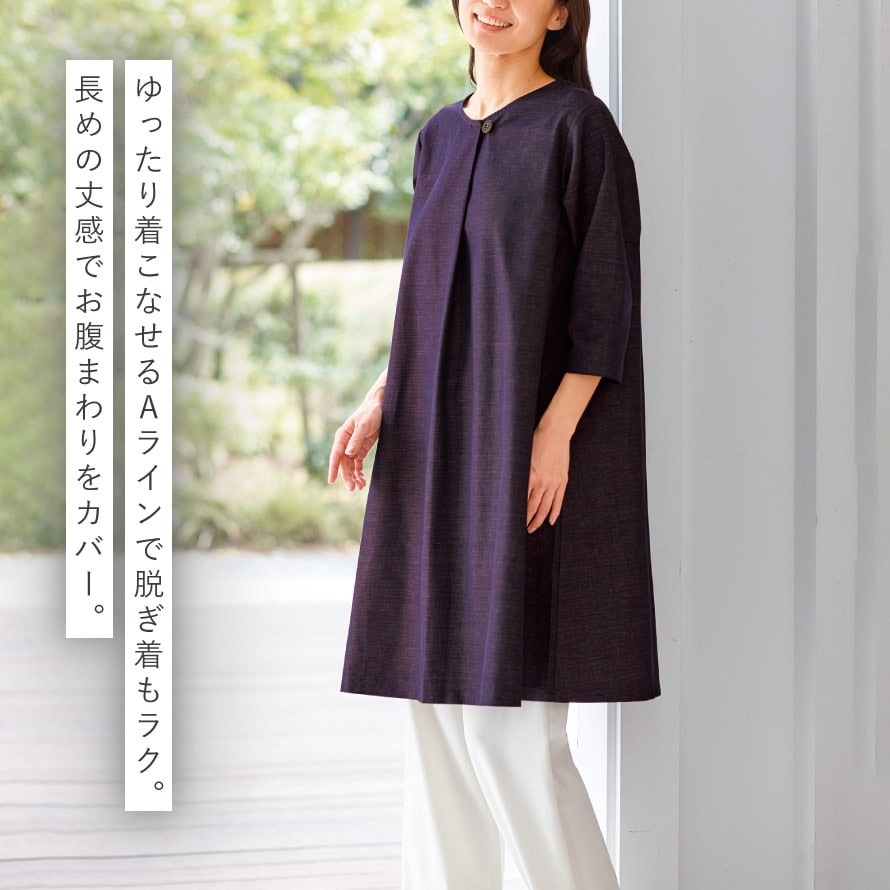 ゆったり着こなせるAラインで、脱ぎ着もラク。