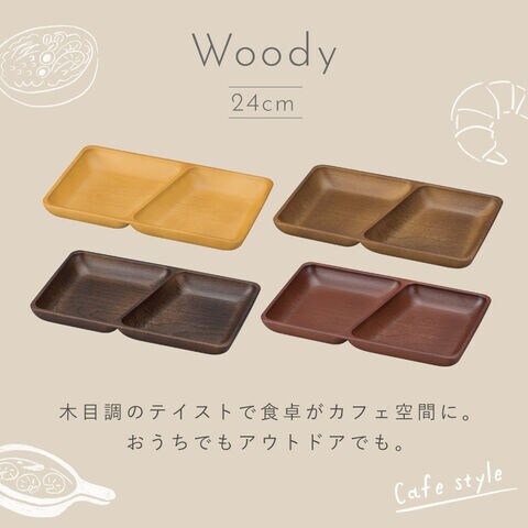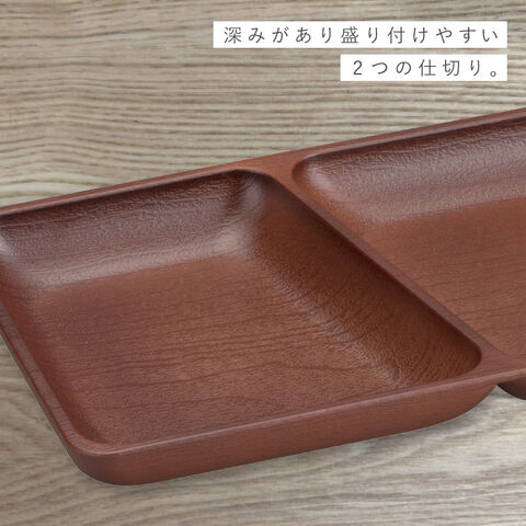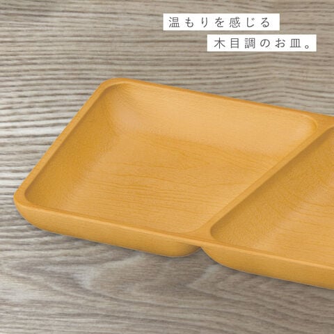 ランチプレート 木製 日本製 割れない 食洗機対応 レンジ対応 スクエアプレート 角型 仕切り皿 木目 ワンプレート 四角 ナチュラル woody ブラウン おうちカフェ アウトドア グランピング キャンプ BBQ バーベキュー カフェ プラスチック製 皿 食器 プレート 割れにくい 割れな...