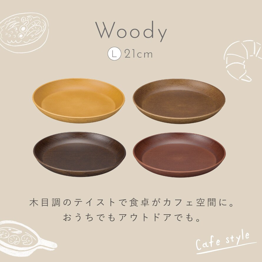 プレート 木目 皿 食器 日本製 割れない 割れにくい 食洗機対応 レンジ対応 丸い ナチュラル ブラウン 丸い woody ラウンドプレート L アウトドア グランピング キャンプ BBQ バーベキュー カフェ プラスチック製 プラスチック 割れない食器
