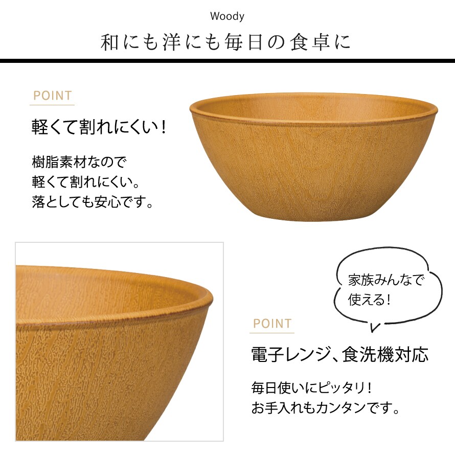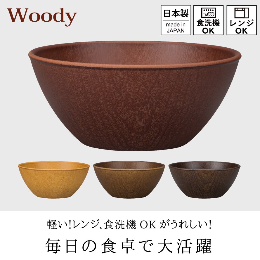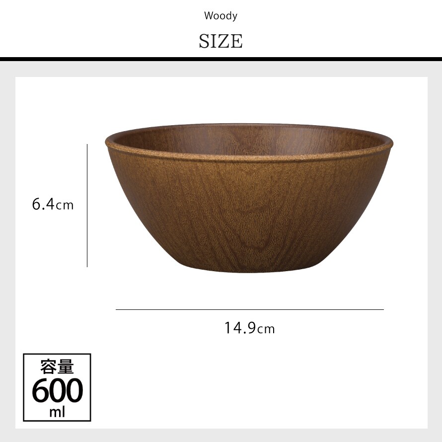 【Lサイズ15cm】ボウル 木目 おうちカフェボウル 割れない プラスチック製 サラダボウル 食器 日本製 割れにくい 食洗機対応 レンジ対応 ブラウン 鉢 woody インスタ映えカフェ食器 ナチュラル カフェ風 アウトドア グランピング BBQ バーベキュー カフェ 割れない食器