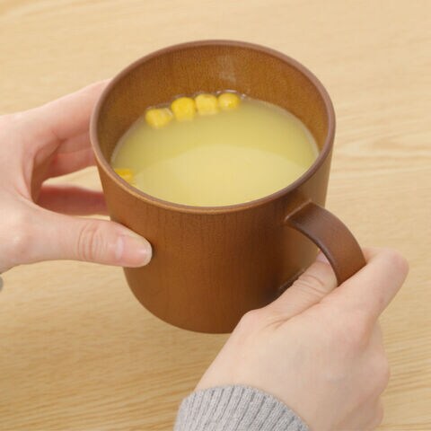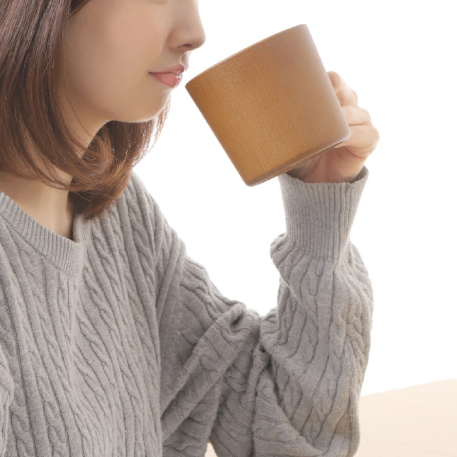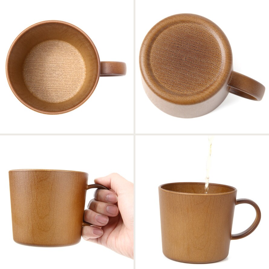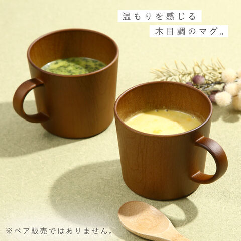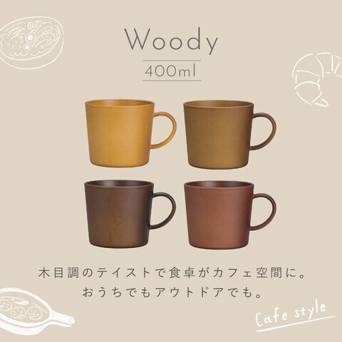 木目調のテイストで食卓がカフェ空間に。おうちでもアウトドアでも、和洋どちらにも合うマグカップ。