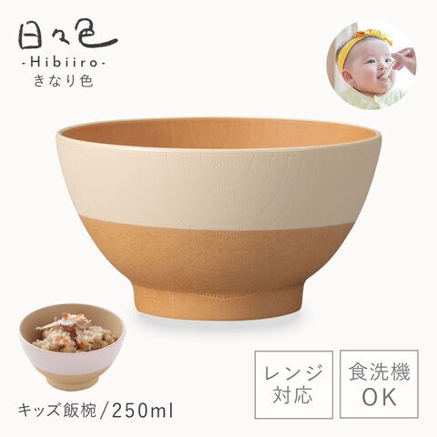 飯碗 お茶碗 250ml キッズ 子供 赤ちゃん 離乳食 食器 木目調 割れない 安全 食洗機対応 レンジ 日本製 和食器 抗菌 スタッキング グレージュ くすみカラー アースカラー 日々色 抗菌キッズ飯碗 BPAフリー