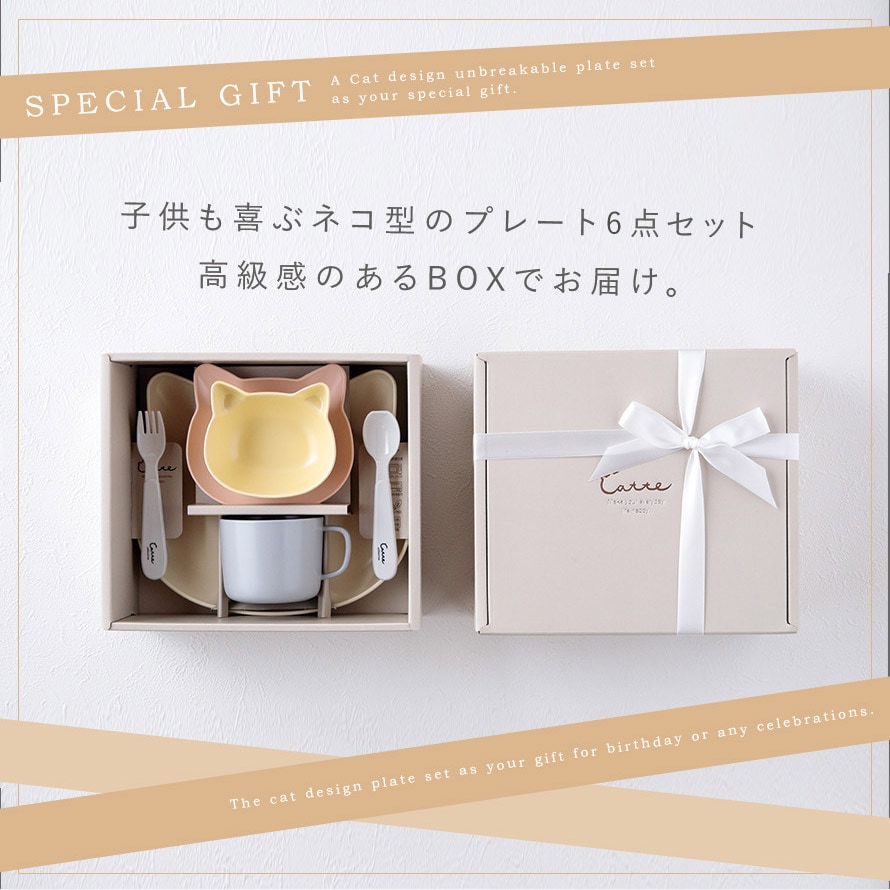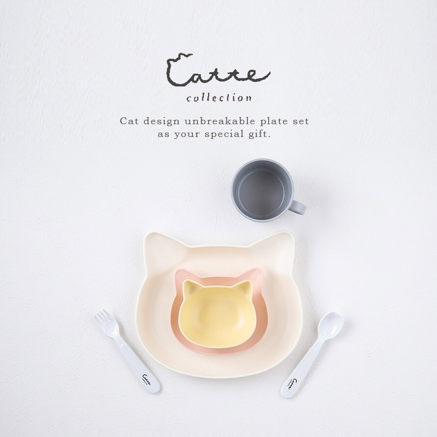 食器セット 猫 BPAフリー 赤ちゃん キッズ 子供 ベビー 食器 セット ギフト プレゼント 出産祝い 食洗機対応 レンジok 割れない 抗菌加工 日本製 かわいい catte キャッテ ギフトボックス 50 アイボリー