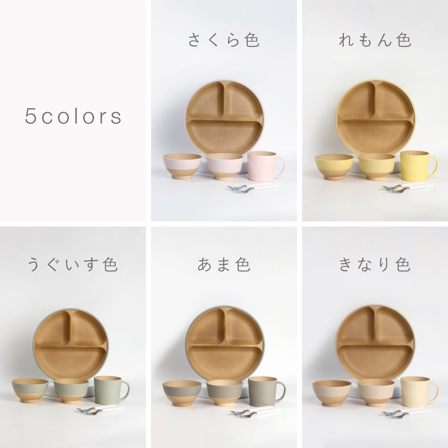 素材は樹脂製ですが、天然木のようなあたたかみのある木目調。割れにくく、離乳食期からお子さまの成長後まで長くお使いいただけます。さらに、抗菌加工・BPAフリーで安心。食洗機対応・電子レンジOKで、毎日の育児をサポートします。