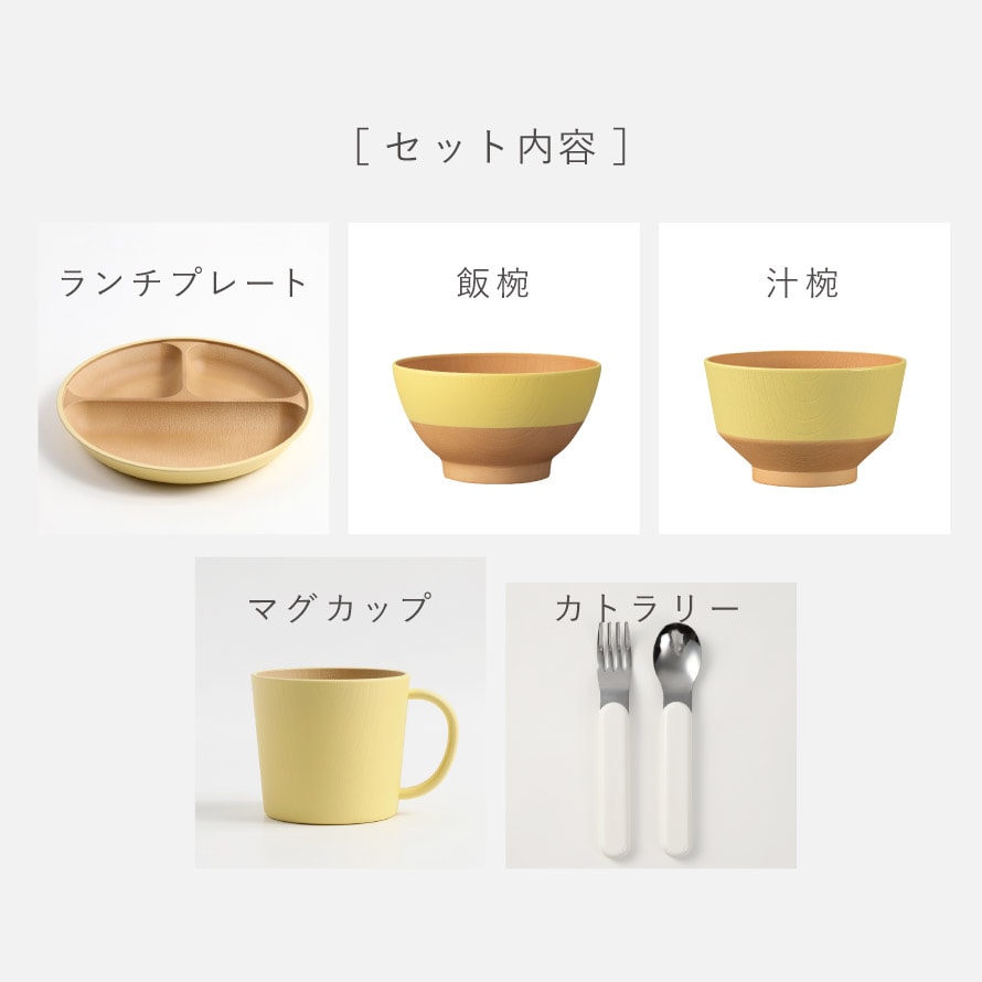 セット内容ランチプレート×1、お茶碗×1、汁椀×1、マグ×1、スプーン×1、フォーク×1