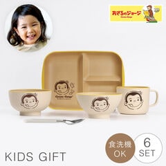 ランチプレートにお茶碗と汁椀、ボウル、マグにスプーンとフォークが付きで、ギフトボックス入りで、出産祝いのベビーギフト、一歳のお誕生日ギフトとしても人気のキッズ用食器セット。