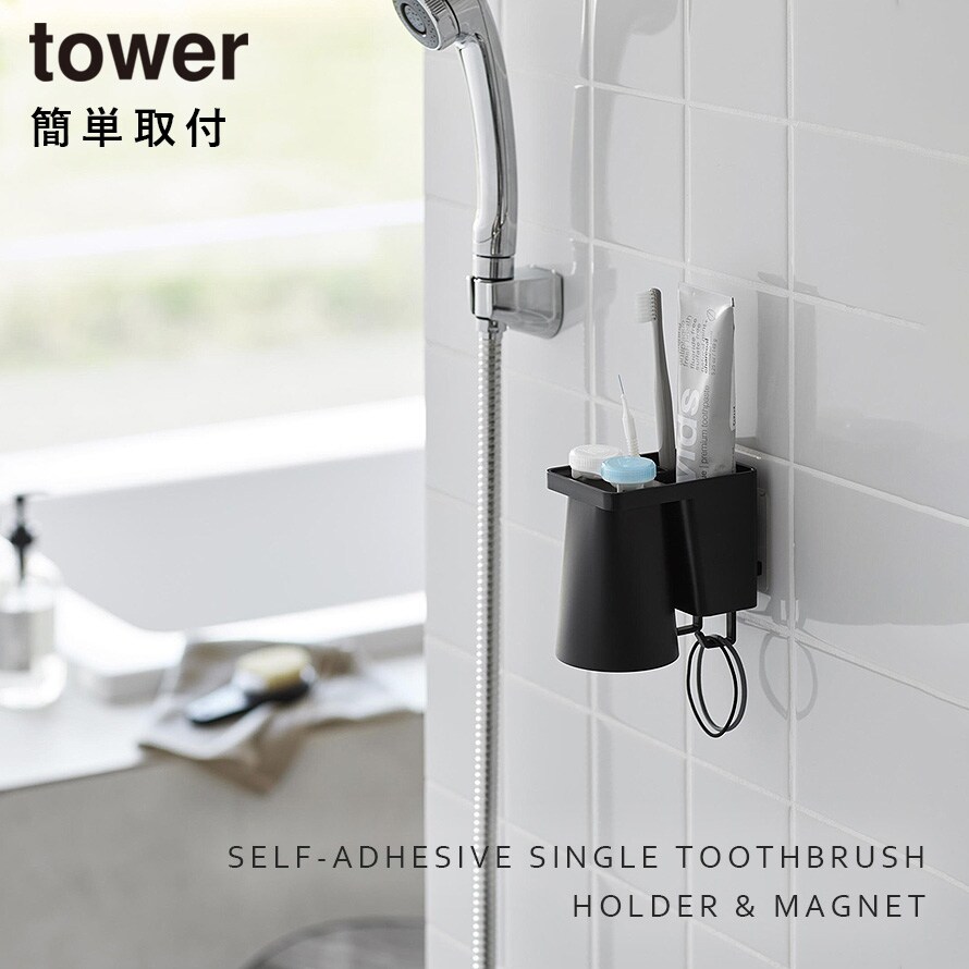 【ポイント5倍】フィルムフック1人用歯ブラシホルダー&マグネットタンブラー タワー 山崎実業 tower 歯ブラシホルダー 浮かせる 洗面所 コップ 逆さ おしゃれ モノトーン ホワイト ブラック 1295 1296