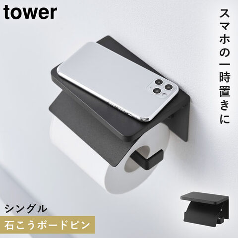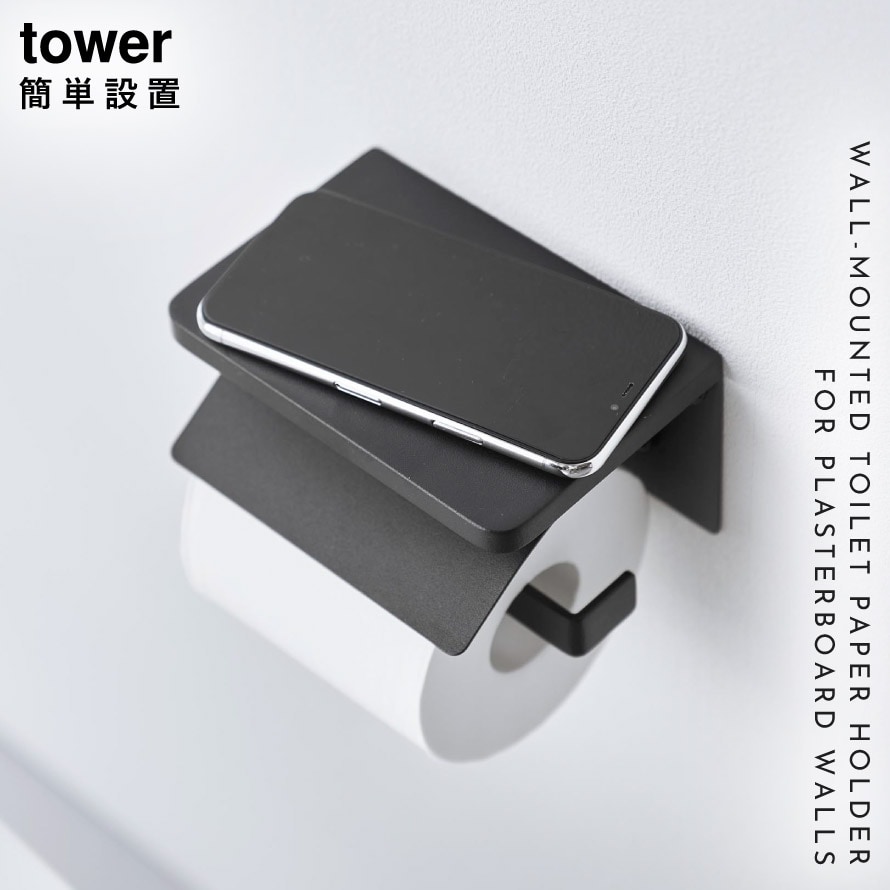 【ポイント5倍】ウォールトイレットペーパーホルダー タワー シングル 石こうボード壁対応 山崎実業 tower トイレットペーパーホルダー 天板 シングル おしゃれ モノトーン ホワイト ブラック 1297 1298