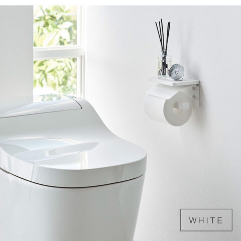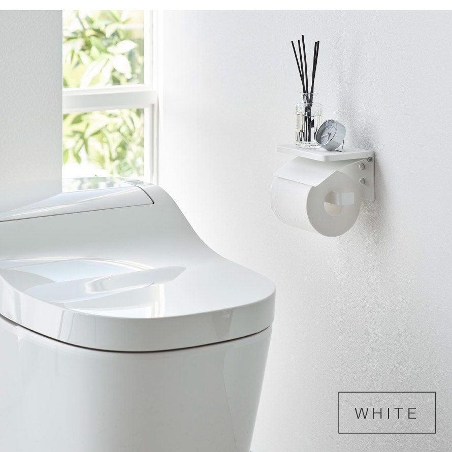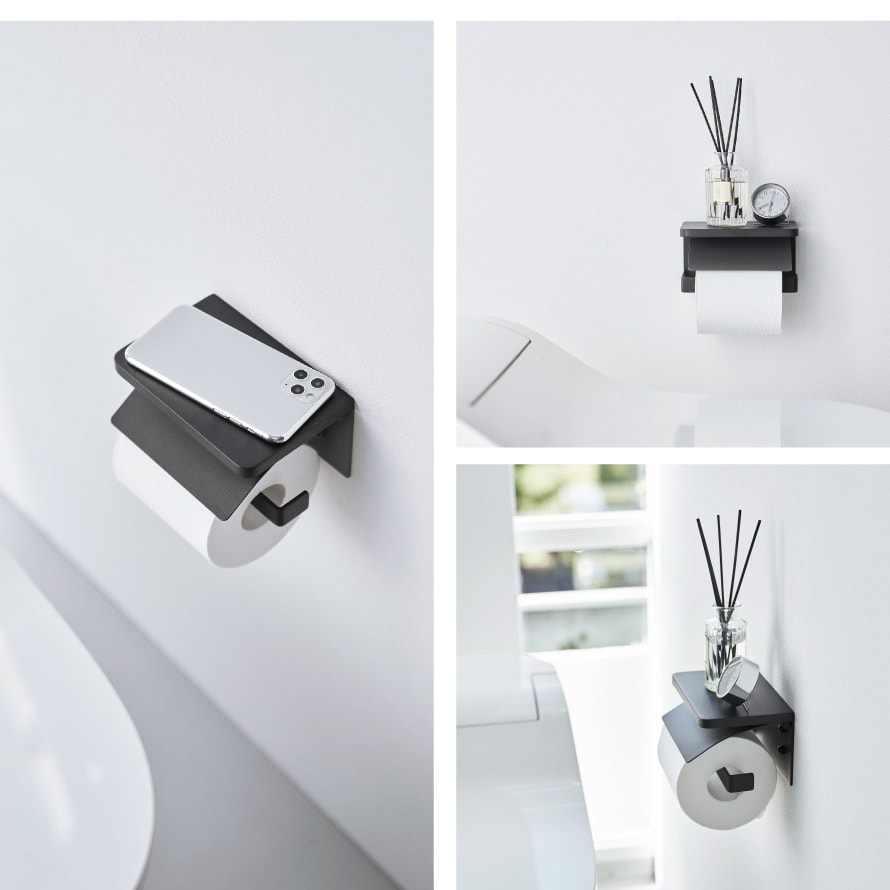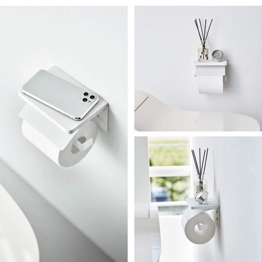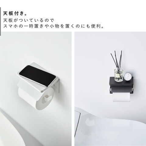 スマホを置くのに便利。天板付きのトイレットペーパーホルダー。