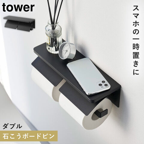 【ポイント5倍】ウォールトイレットペーパーホルダー タワー ダブル 石こうボード壁対応 山崎実業 tower トイレットペーパーホルダー 天板 ダブル おしゃれ モノトーン ホワイト ブラック 1299 1300