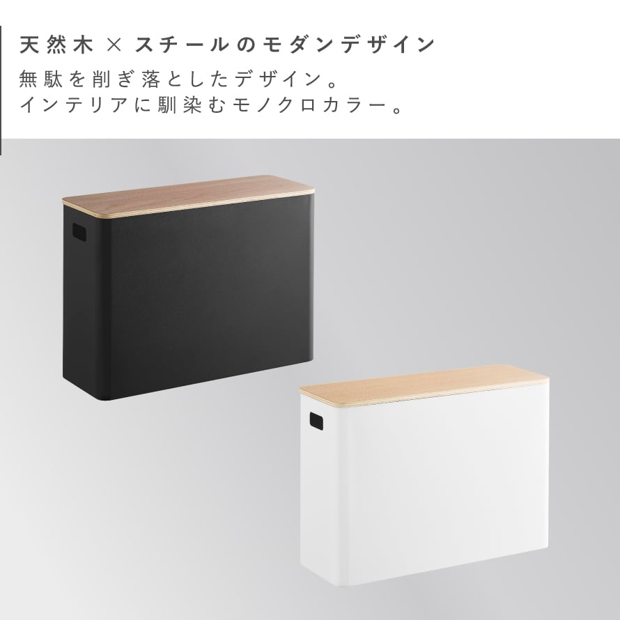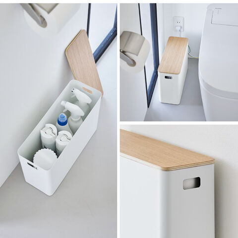 スチールと木の組み合わせが上質な蓋付きトイレ用品収納。