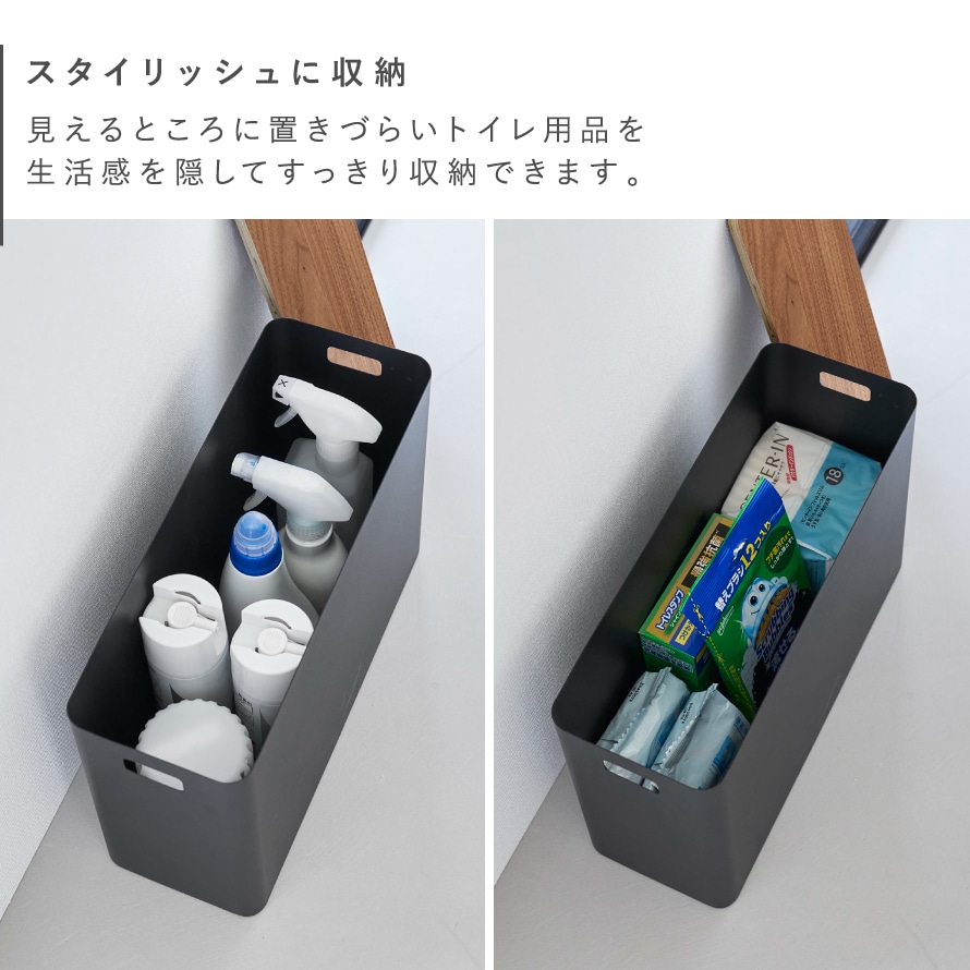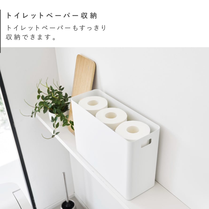 トイレットペーパーや生理用品、掃除用具など散らかりがちな小物を収納できます。