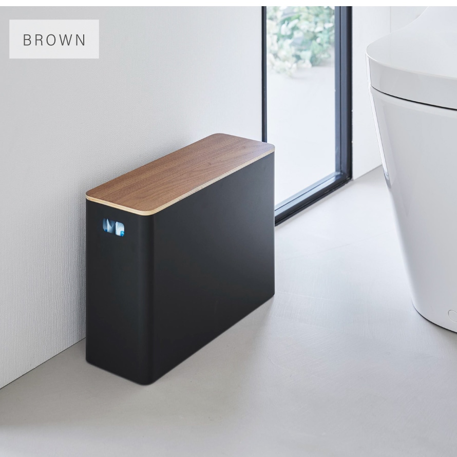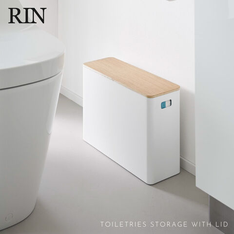 蓋付きトイレ用品収納 リン 山崎実業 RIN トイレ 収納 トイレ収納 スリム 生理用品 蓋付き おしゃれ 木製 木目 1320 1321