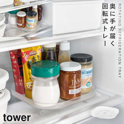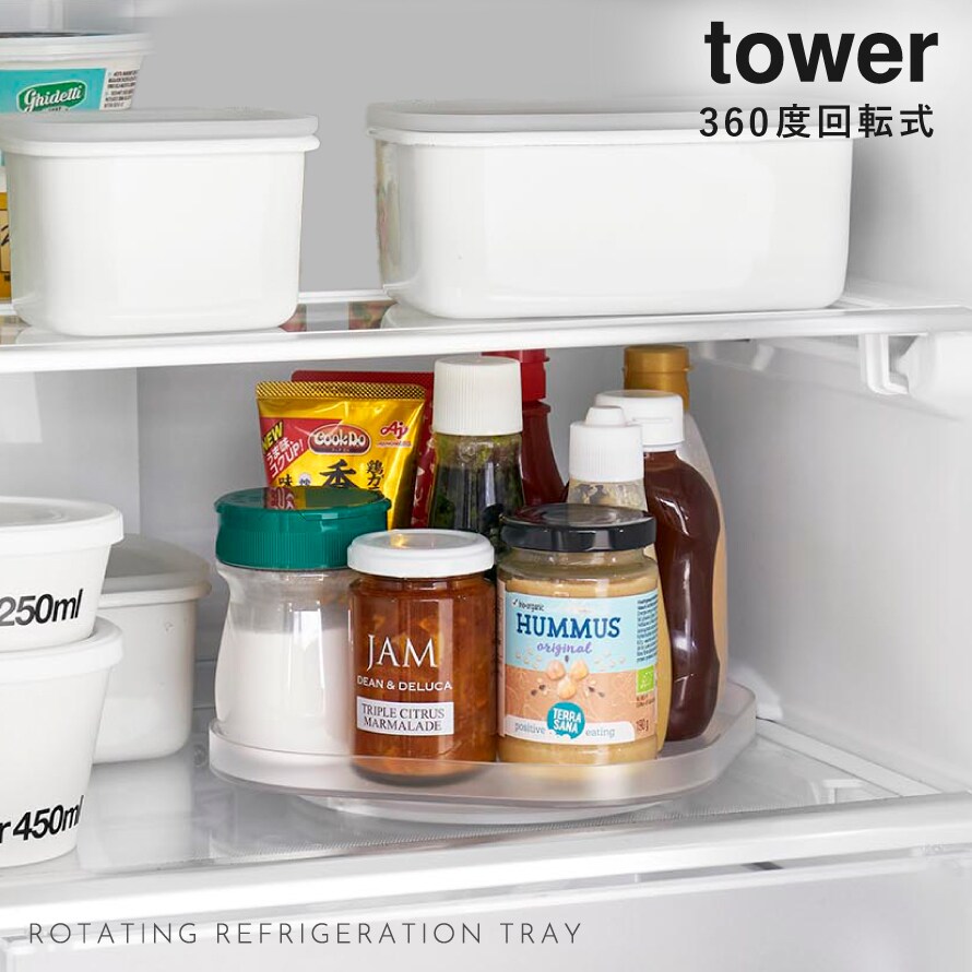 【ポイント5倍】冷蔵庫中回転式トレー スクエア タワー 山崎実業 tower 冷蔵庫 回転トレー 冷蔵庫内 整理 トレー 収納 グッズ おしゃれ モノトーン ホワイト ブラック 1322 1323