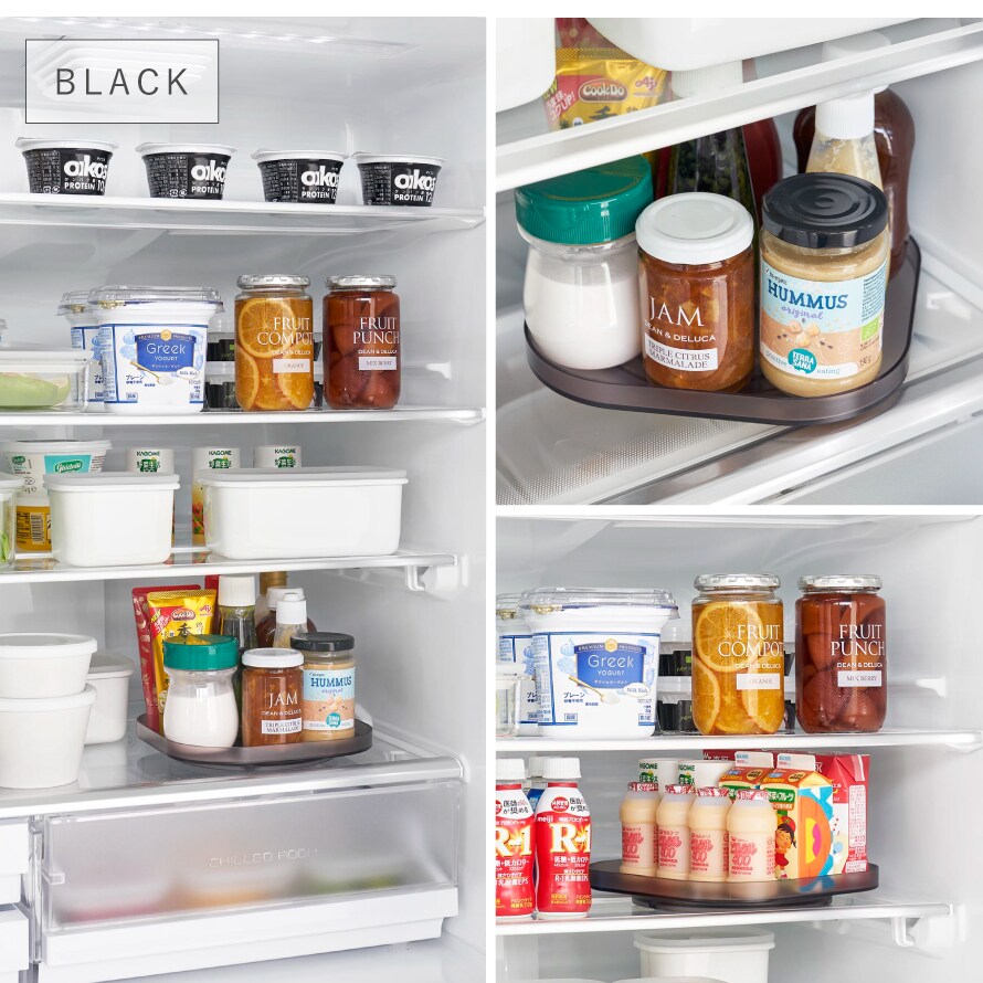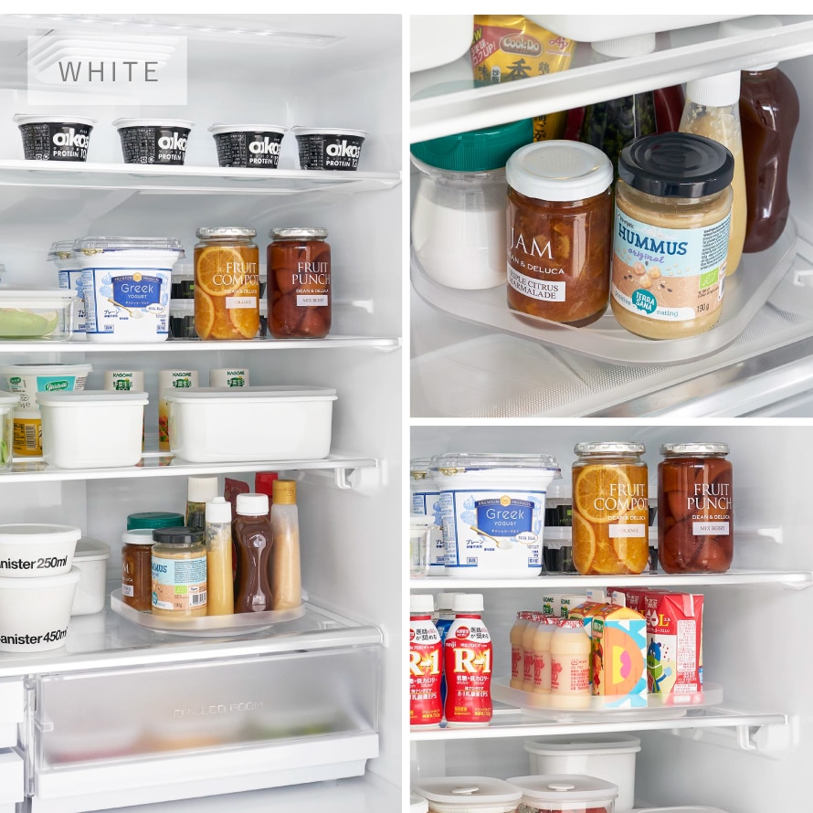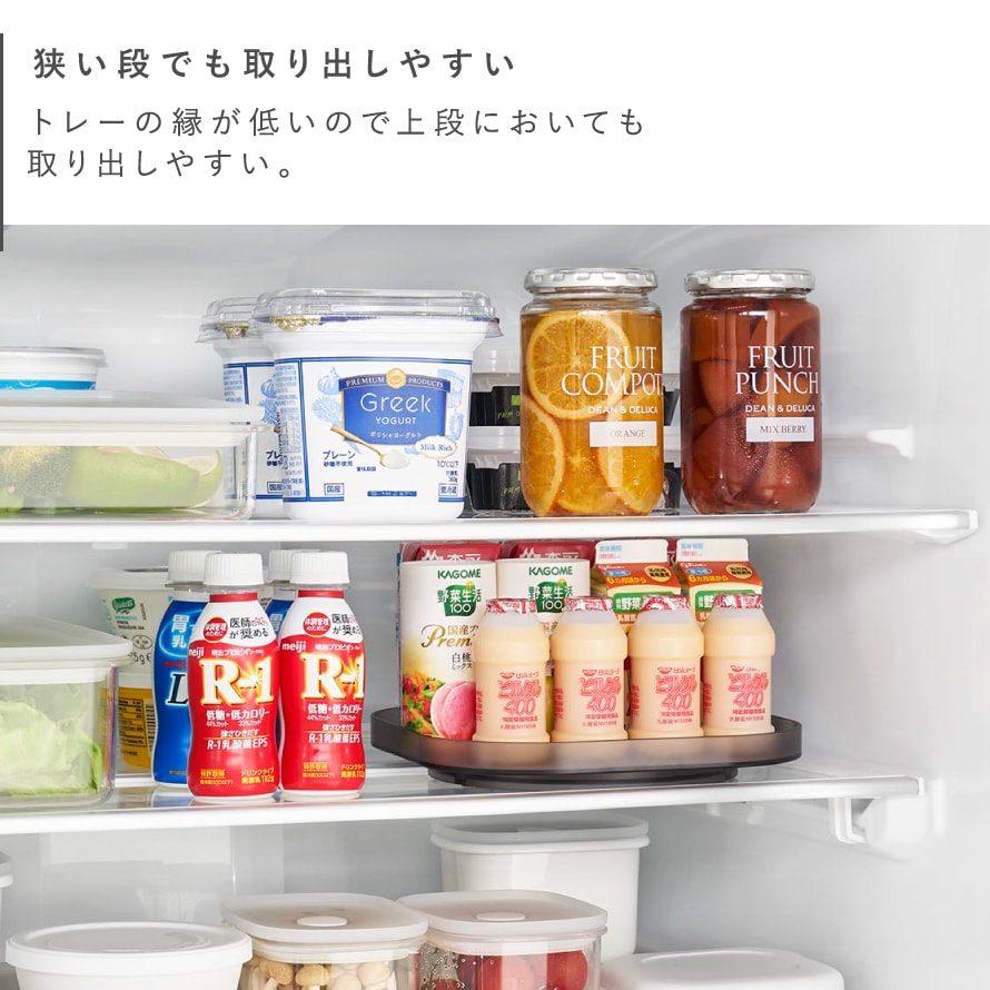 調味料やジャムの瓶などをまとめてすっきり整頓!奥の物が取り出しやすい回転式のトレーです。