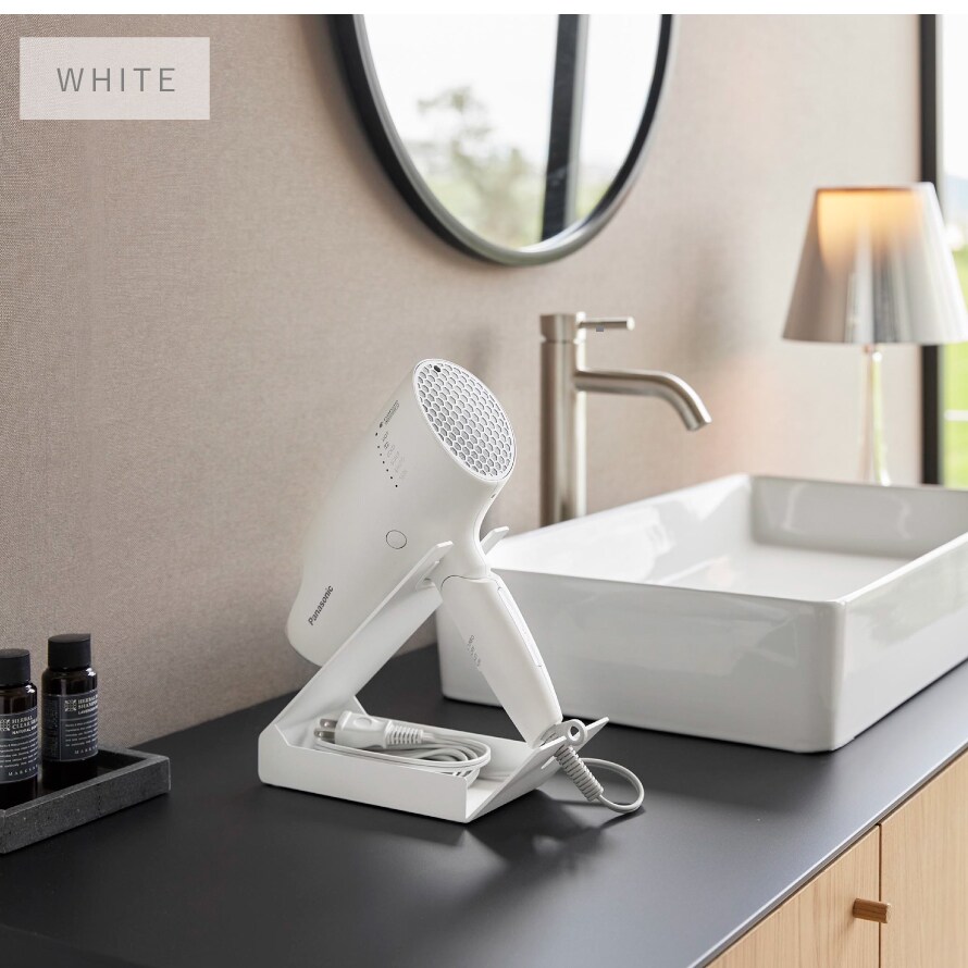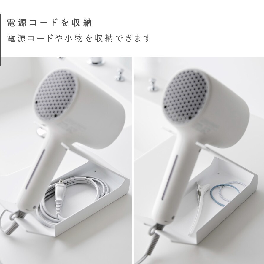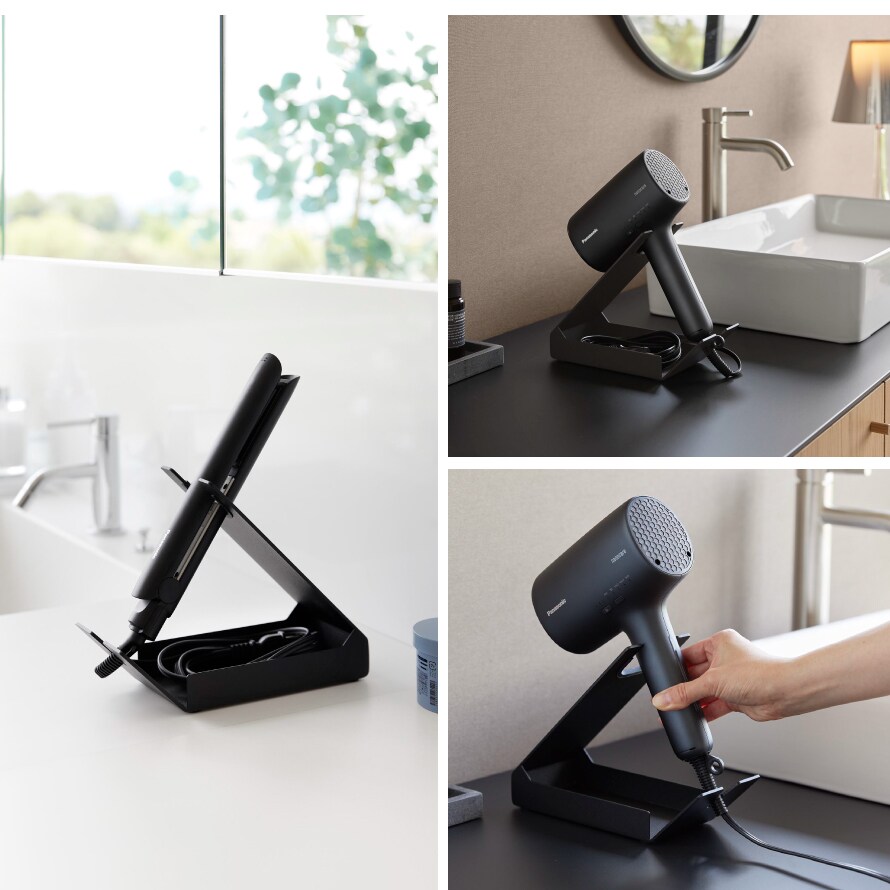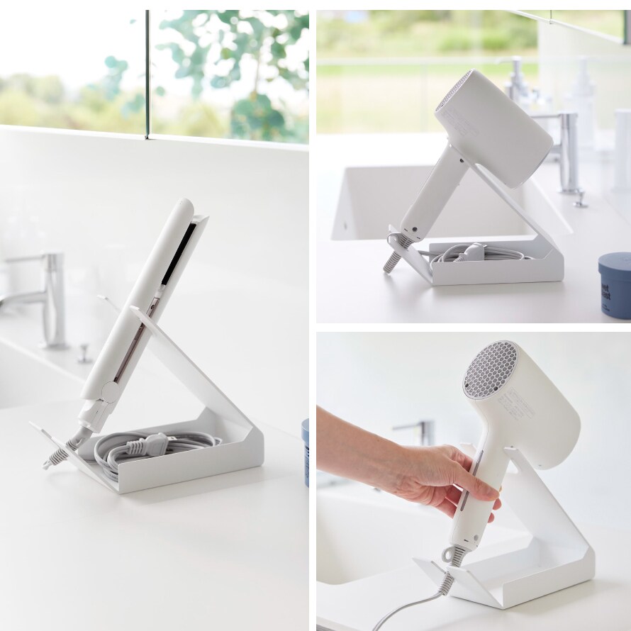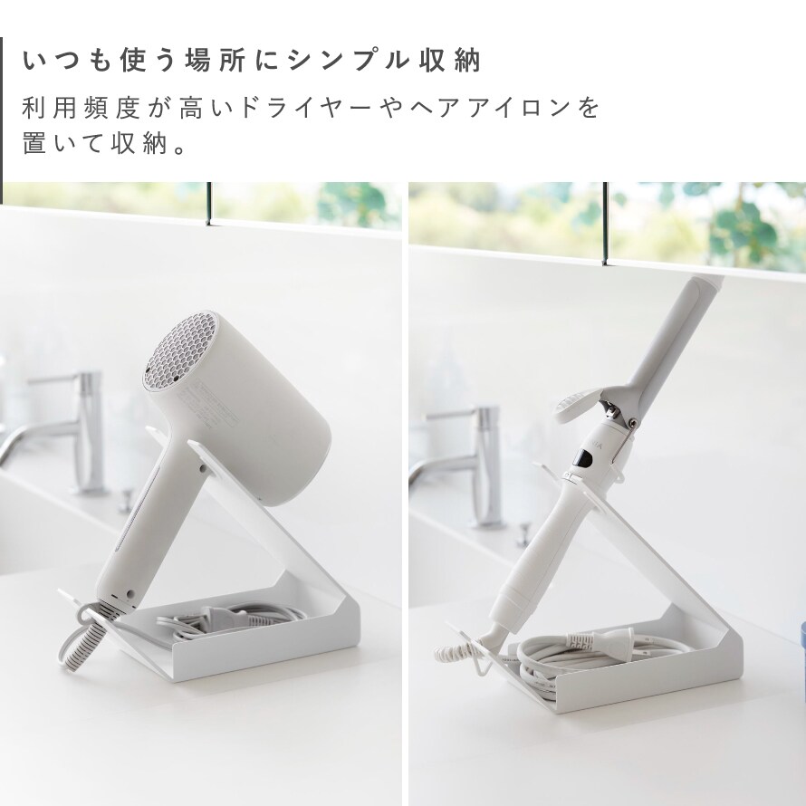 サッと使えて便利!電源コードが収納できるドライヤー&ヘアーアイロンスタンド。