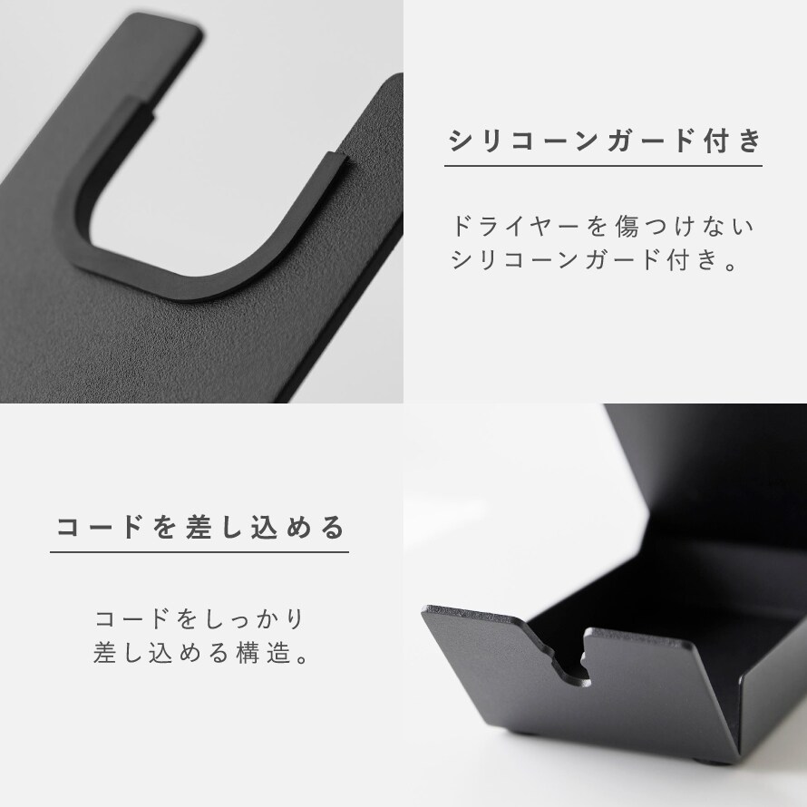 ドライヤーをキズつけないシリコーンガード付き。コードをしっかり差し込める構造です。