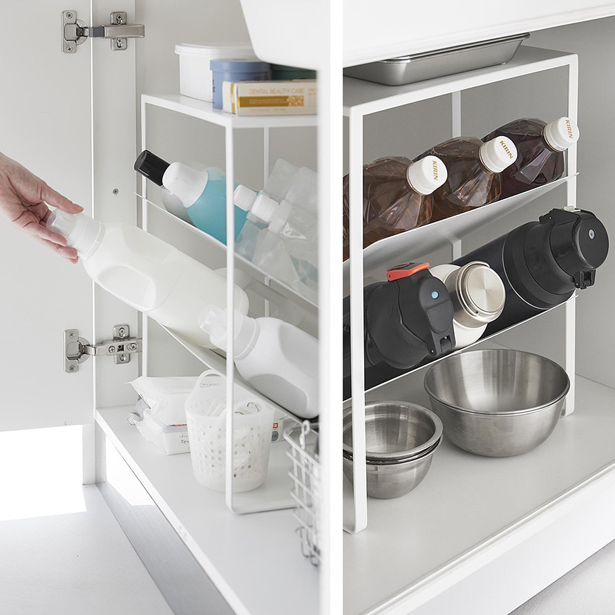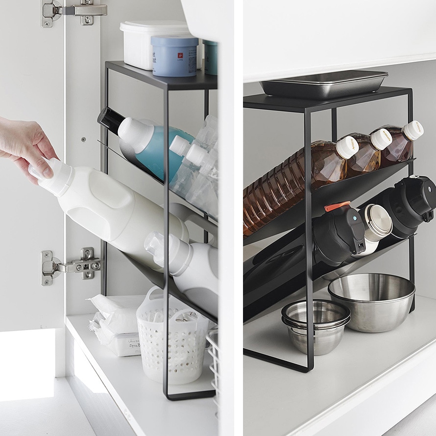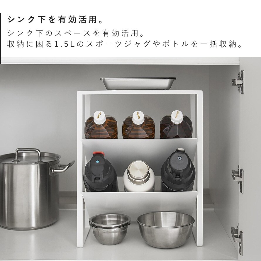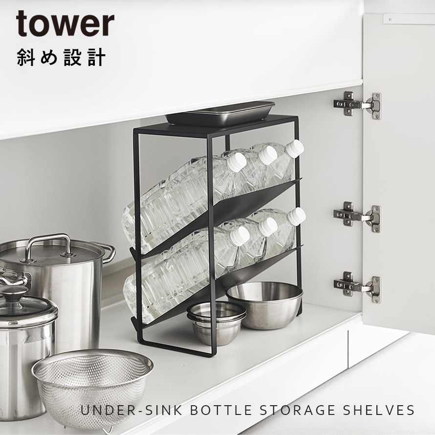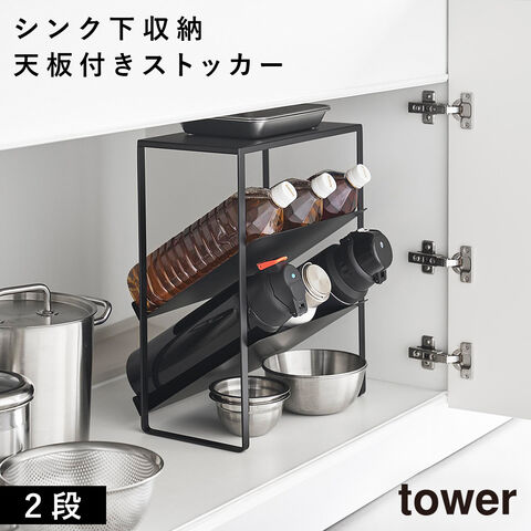 シンク下天板付きボトル&ジャグボトルストッカー タワー 山崎実業 tower ストック 収納棚 キッチン 洗面台下 収納 おしゃれ モノトーン ホワイト ブラック 1336 1337